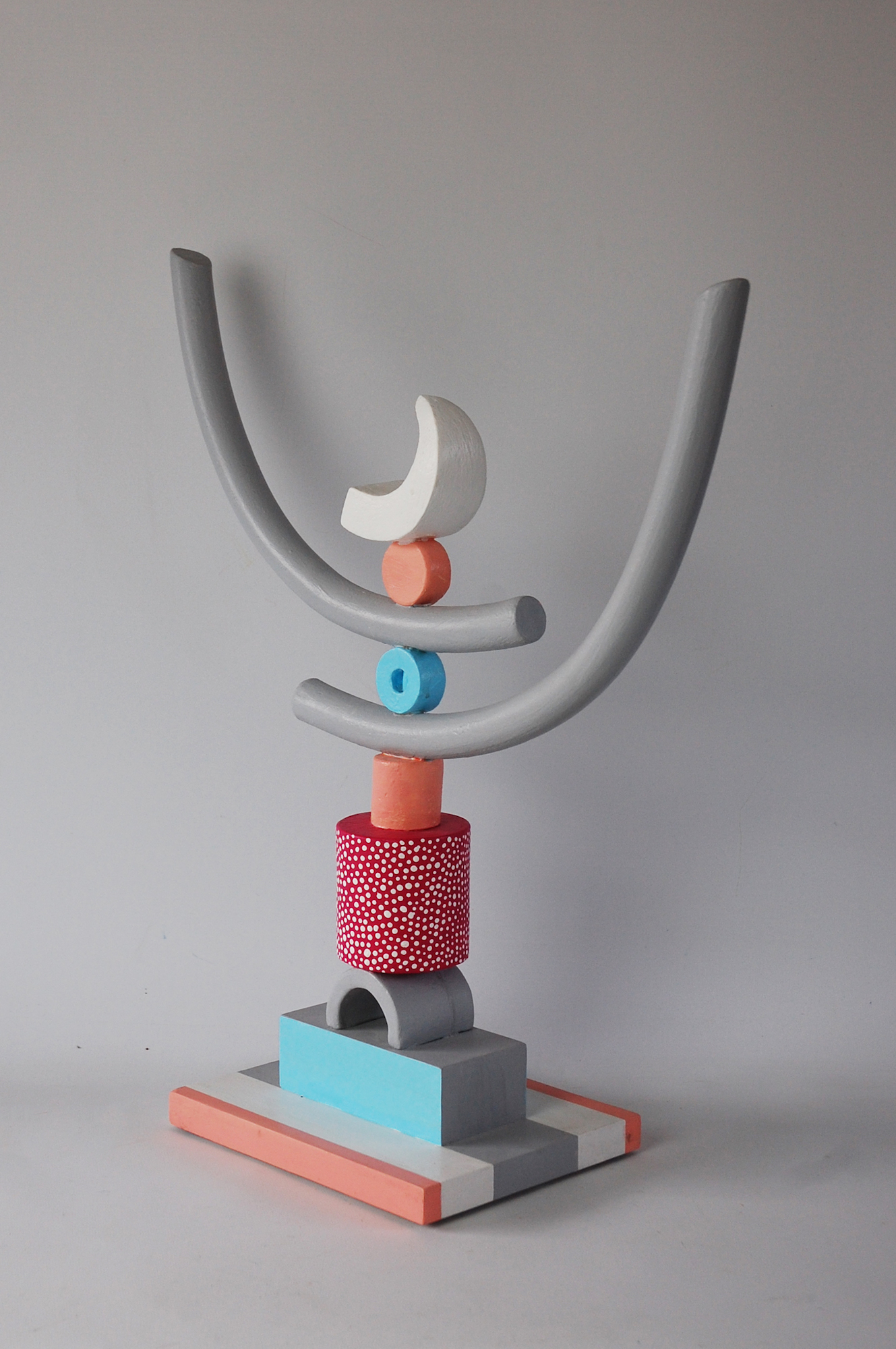 Drawing inspiration from the American tradition of painted fired clay, Patricia paints her sculptures with acrylic paint, choosing the combination of colours intuitively and subjectively, but at the same time with great consideration. The intense and vibrant colours used emphasise the shapes of the sculpture, the balances and contrasts between power and fragility, stability and precariousness, heaviness and lightness. They can suggest different ideas to the viewer, such as tranquillity, conflict or the sense of movement.