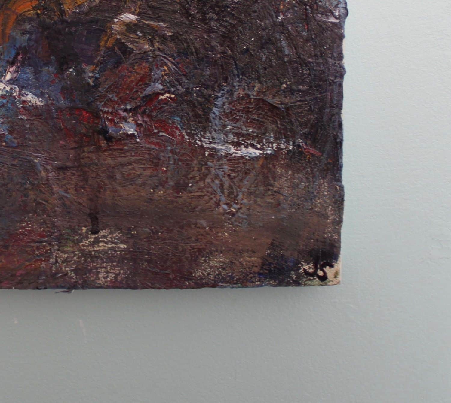 Before painting, Jonathan Shearer totally immerges himself in the wild landscapes and establishes a connection by extensively walking through them, by contemplating them and by visiting them multiple times. On site he draws small oil sketches and takes digital photographs, which he uses as a reference for the final artworks that he paints later at the studio. His way of painting at the studio is strongly gestural and vigorous, causing sometimes the paint to run and drip on the surface.