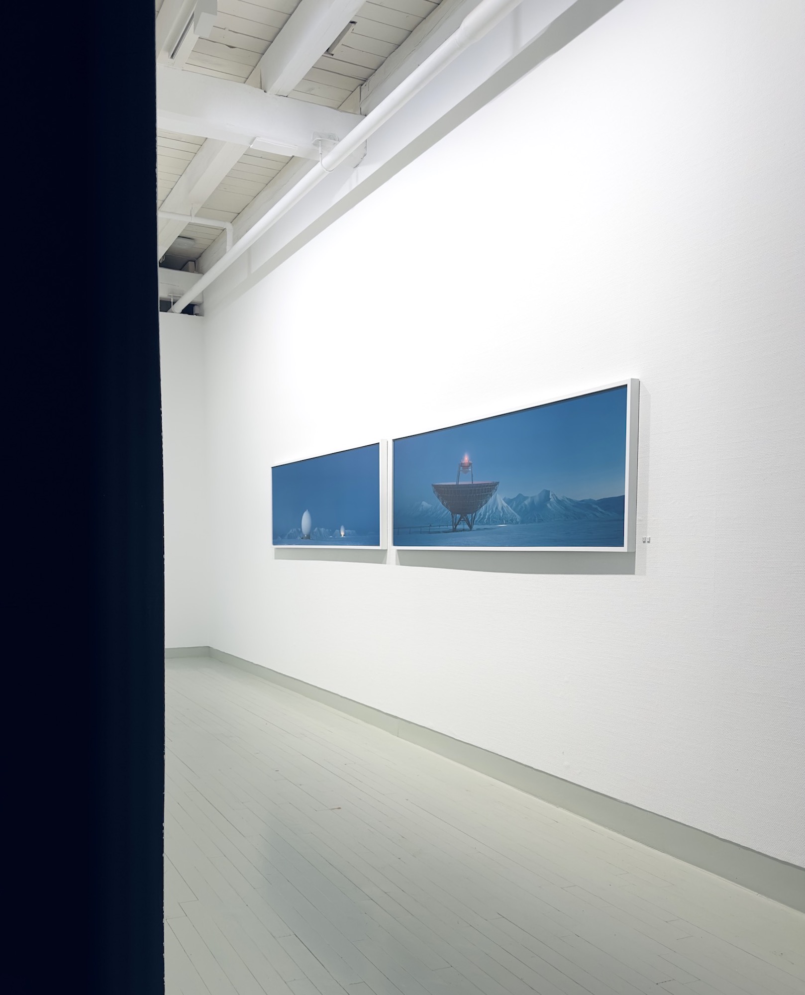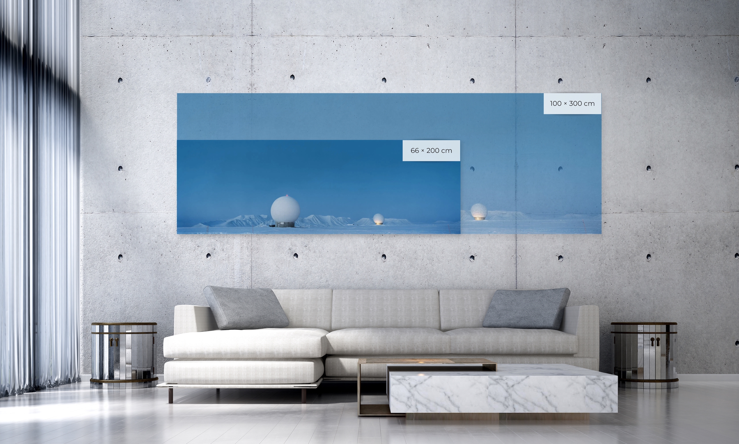 All of the photographs in the Arctic Technology series were taken on Spitsbergen, the largest island in the Svalbard archipelago, which is located between mainland Norway and the North Pole. This area is renowned for its untouched, moon-like landscape and magical light. It also has the cleanest atmosphere on Earth, making it particularly suitable for climate research and space observation. Gigantic technical installations, satellite receivers, and a Global Seed Vault containing biodiversity have been constructed on the island, blending with the pristine natural landscape while also interfering with it. While aesthetically captivating, Christian Houge’s photographs prompt reflection on the relationship between technology and nature. The panoramic format he has chosen for this series aims to create a sense of spatial disorientation.