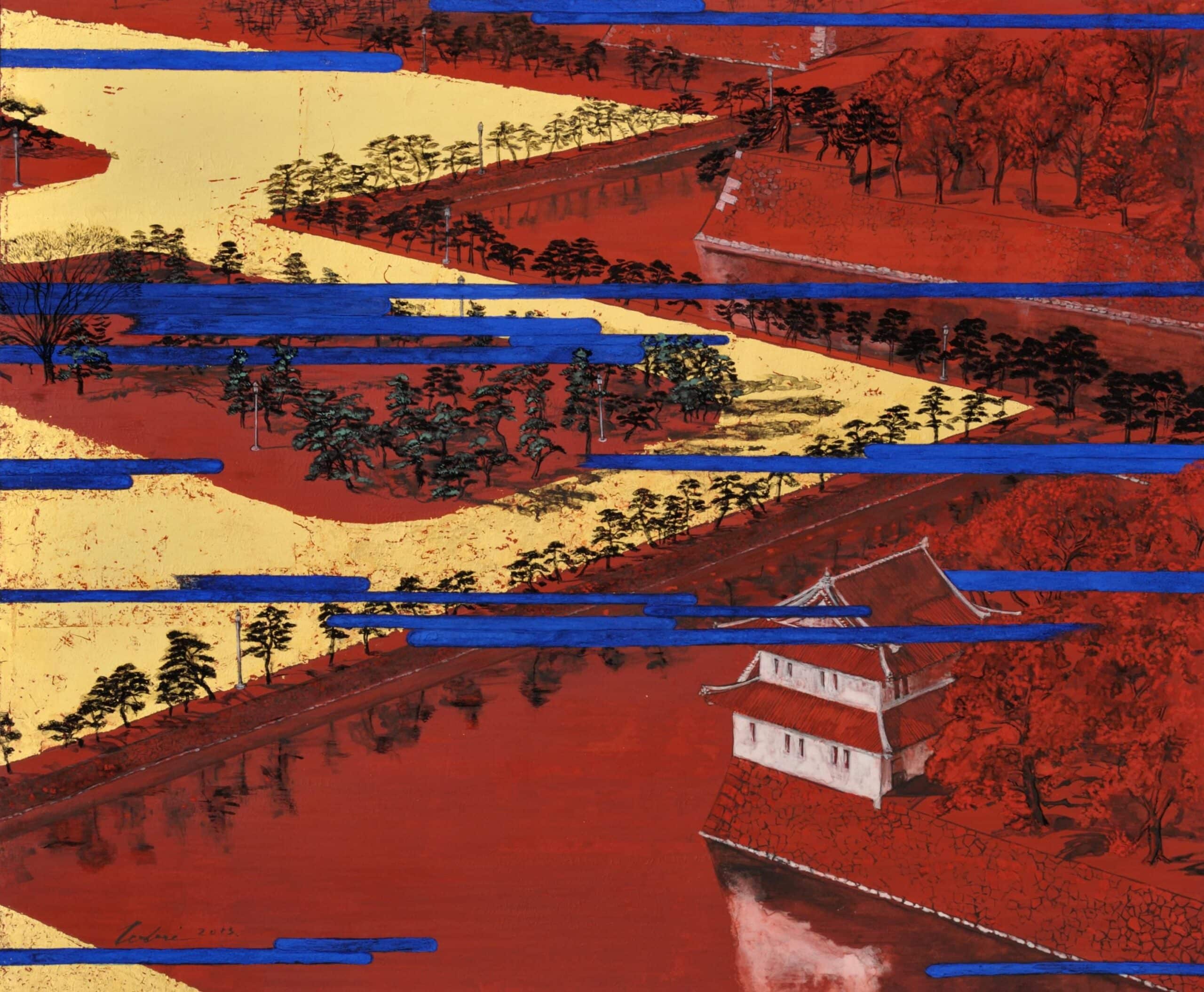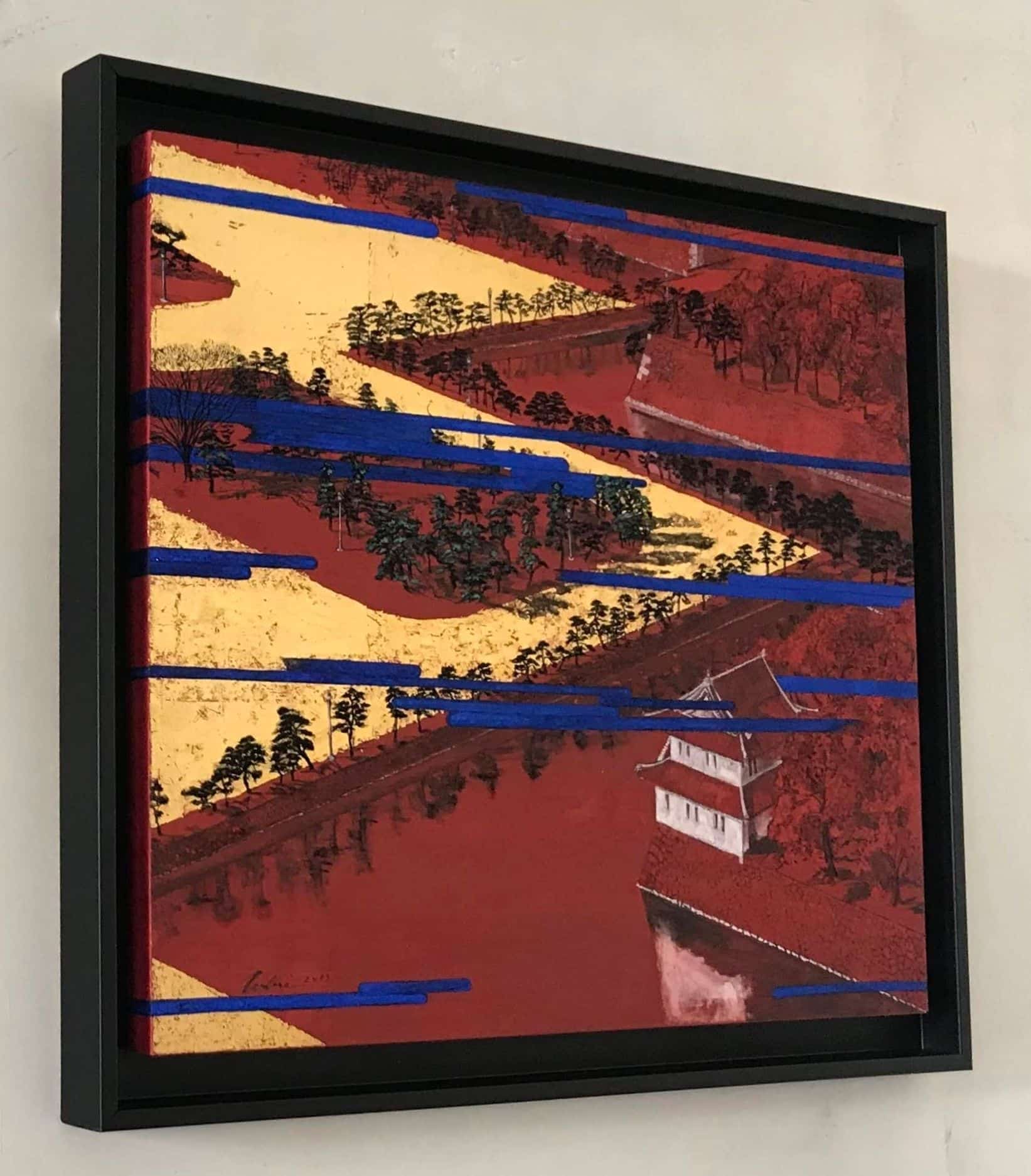 Square With Palace I is a painting by contemporary Franco-Japanese artist Lumi Mizutani. In this series of figurative paintings, Lumi Mizutani pays tribute to the landscapes of Japan, especially Higashiyama-ku, the garden of Honpo-ji temple in Kyoto, and Ueno on Tokyo.