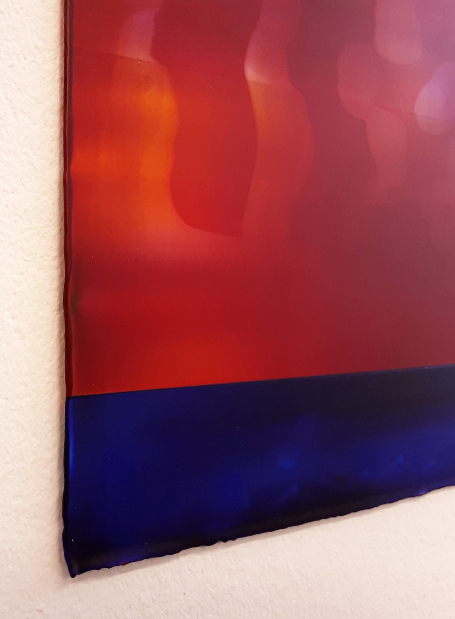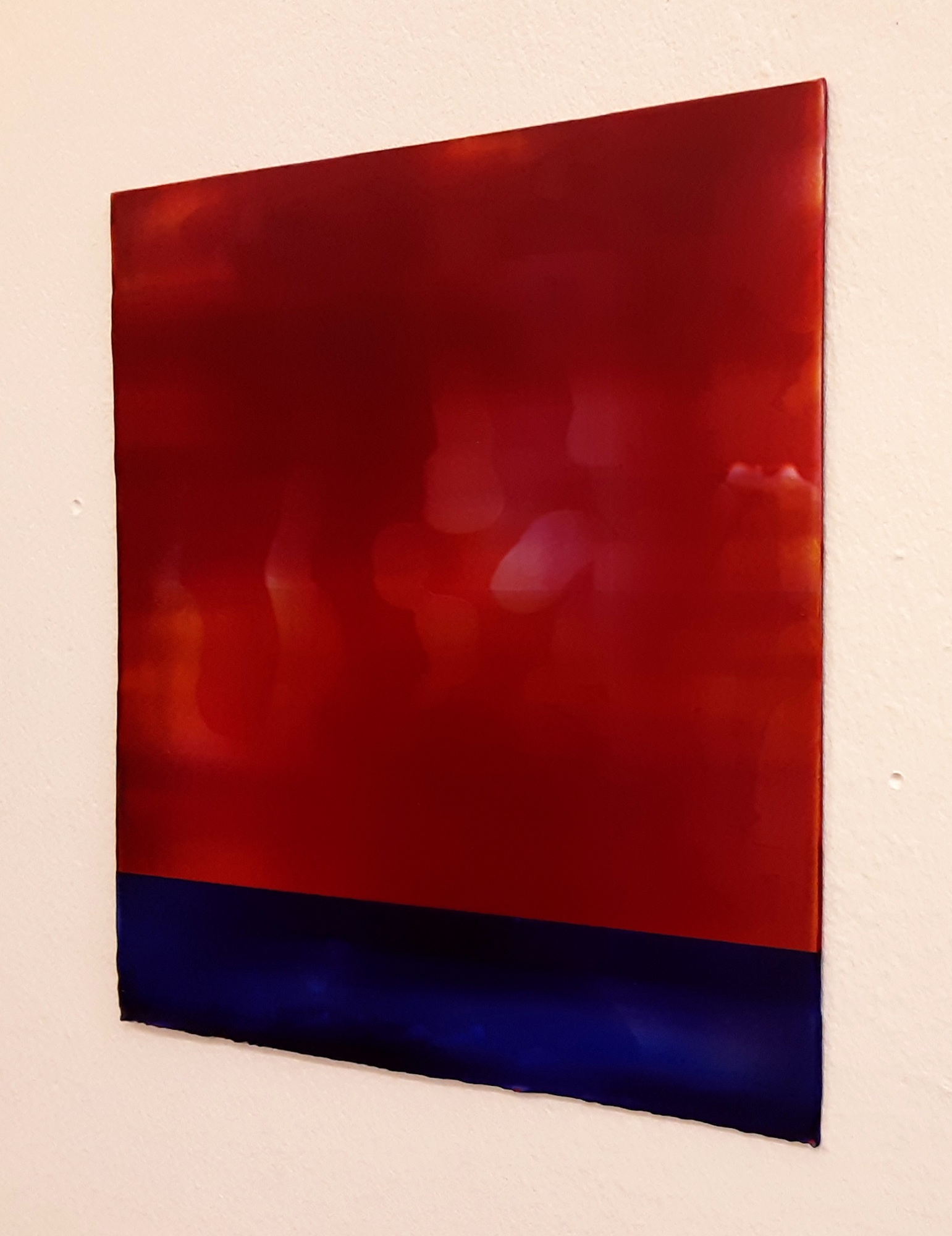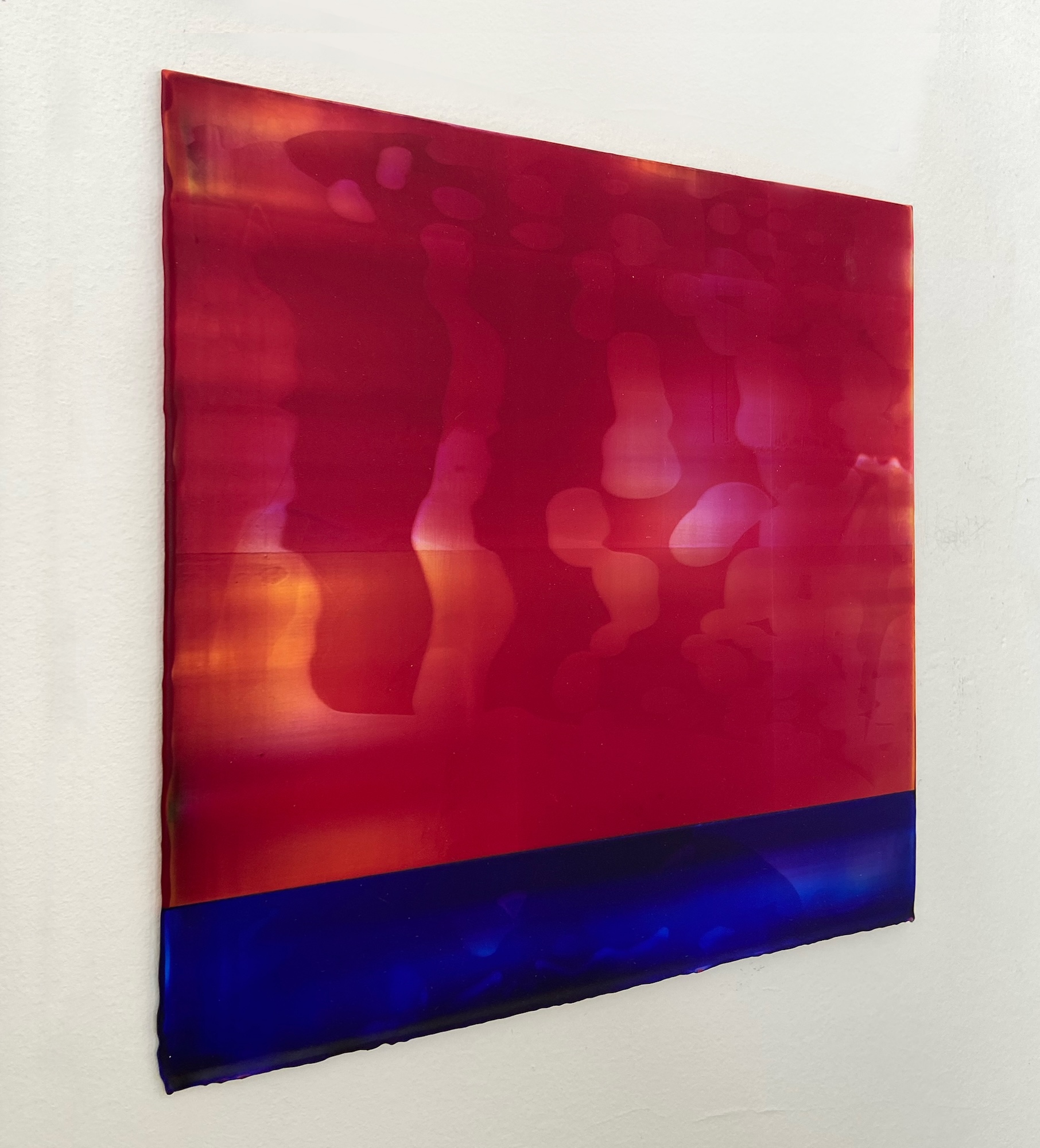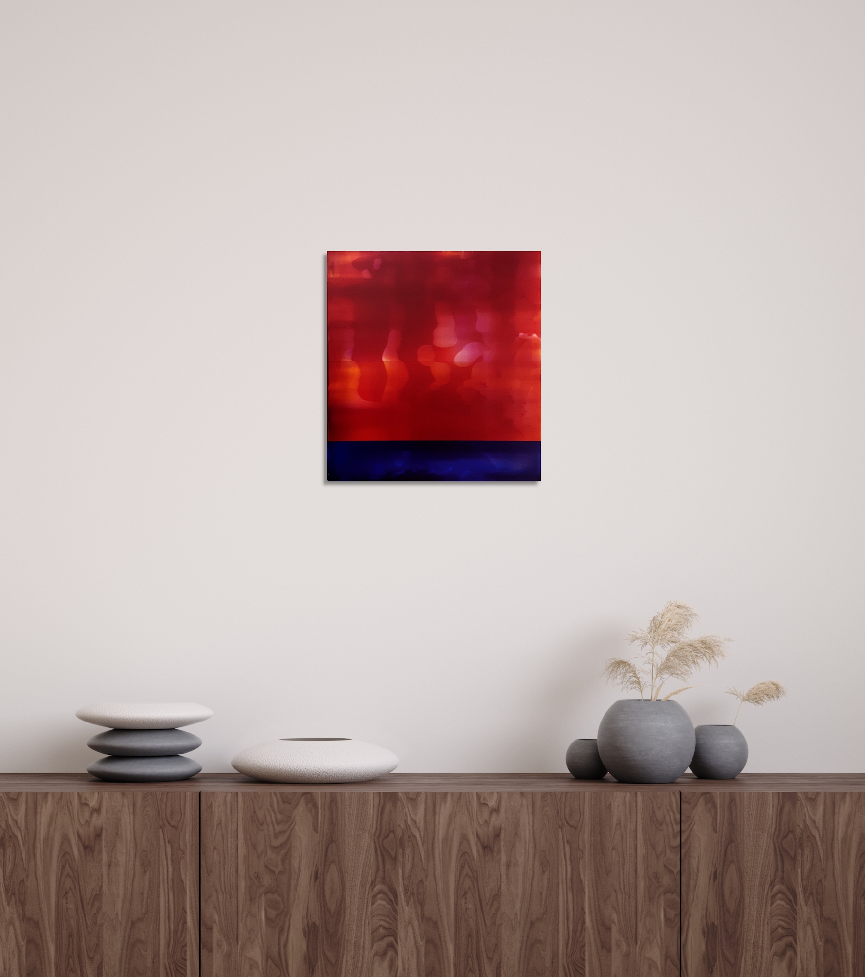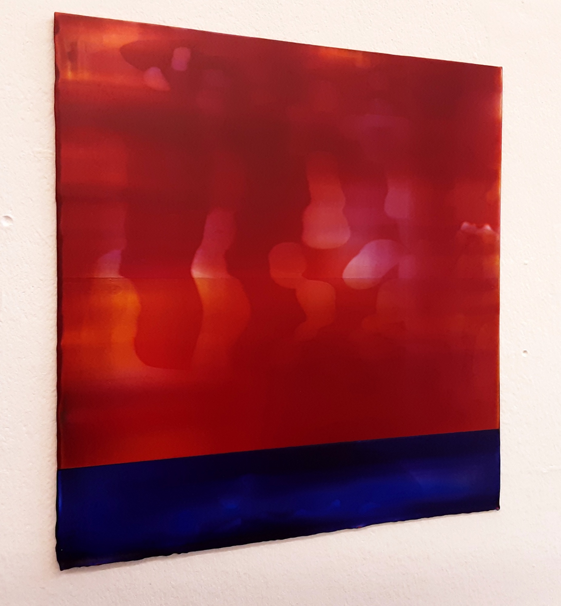 James Lumsden’s abstract paintings explore themes of light, colour and depth. His creative process involves superimposing dozens of thin layers of acrylic paint onto the canvas or the paper as for this artwork. The paint is worked with specific tools to conceal or bring out traces and marks. Layer by layer, the artist succeeds in creating an illusion of depth and light within the painting, immersing the viewer in a mysterious and seductive universe.