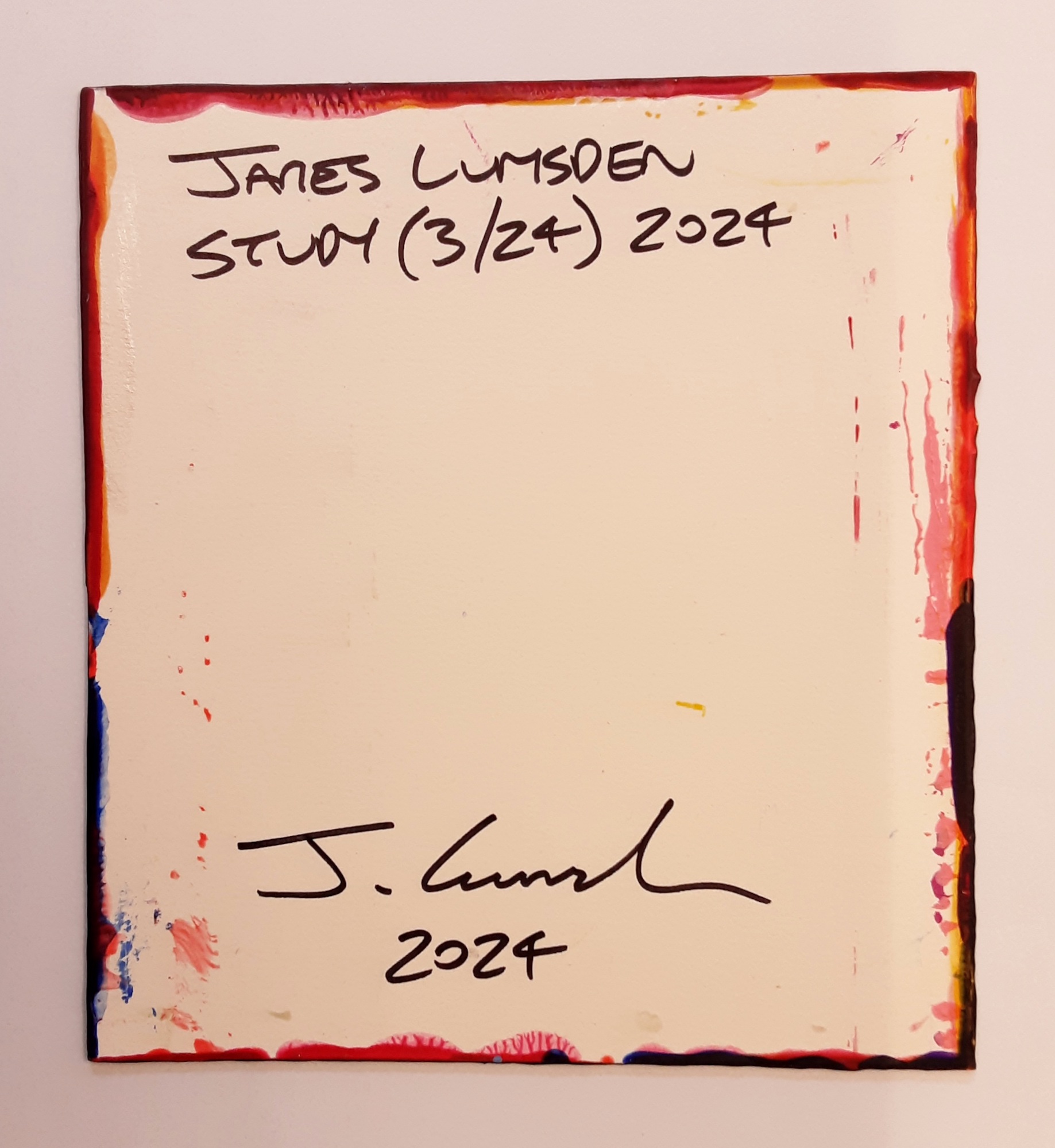 Study (3/24) is a small-size painting on paper by Scottish artist James Lumsden. For this piece, the artist uses shades of red and blue.