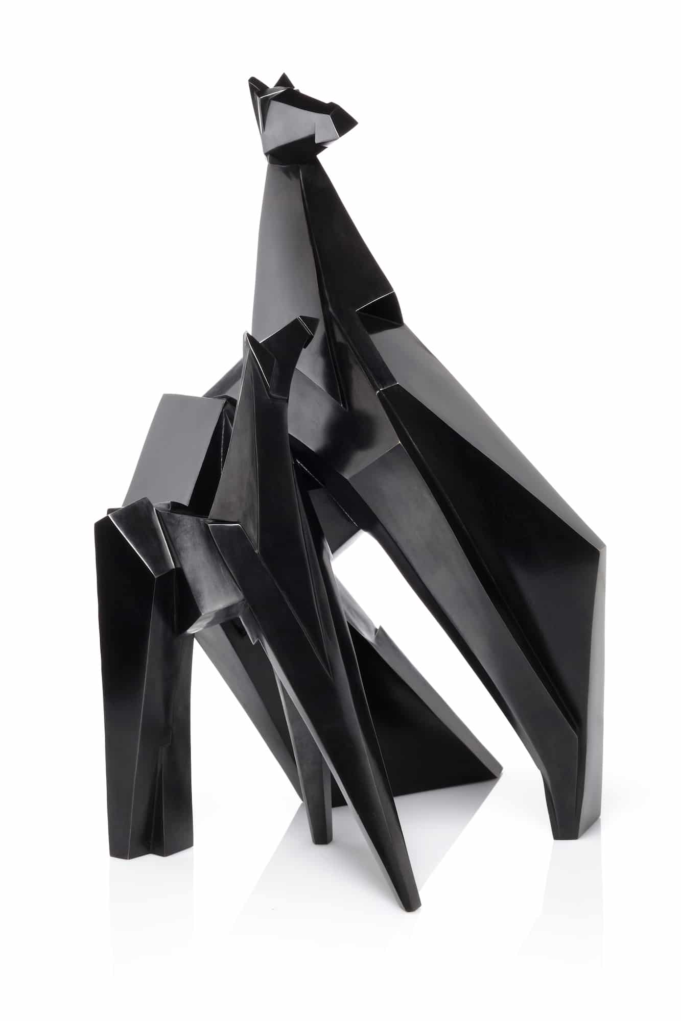 This mare and her foal in bronze take shape through a series of lines, edges and curves. The animal’s characteristics are recognizable their legs, their head and their manes . But the peculiarity of the artist’s interpretation comes to the fore in the clarity of the shape, the sharpness of the lines, the sculpture’s geometric aspect. Enough elements to render these horses unique pieces, brimming with emotion.