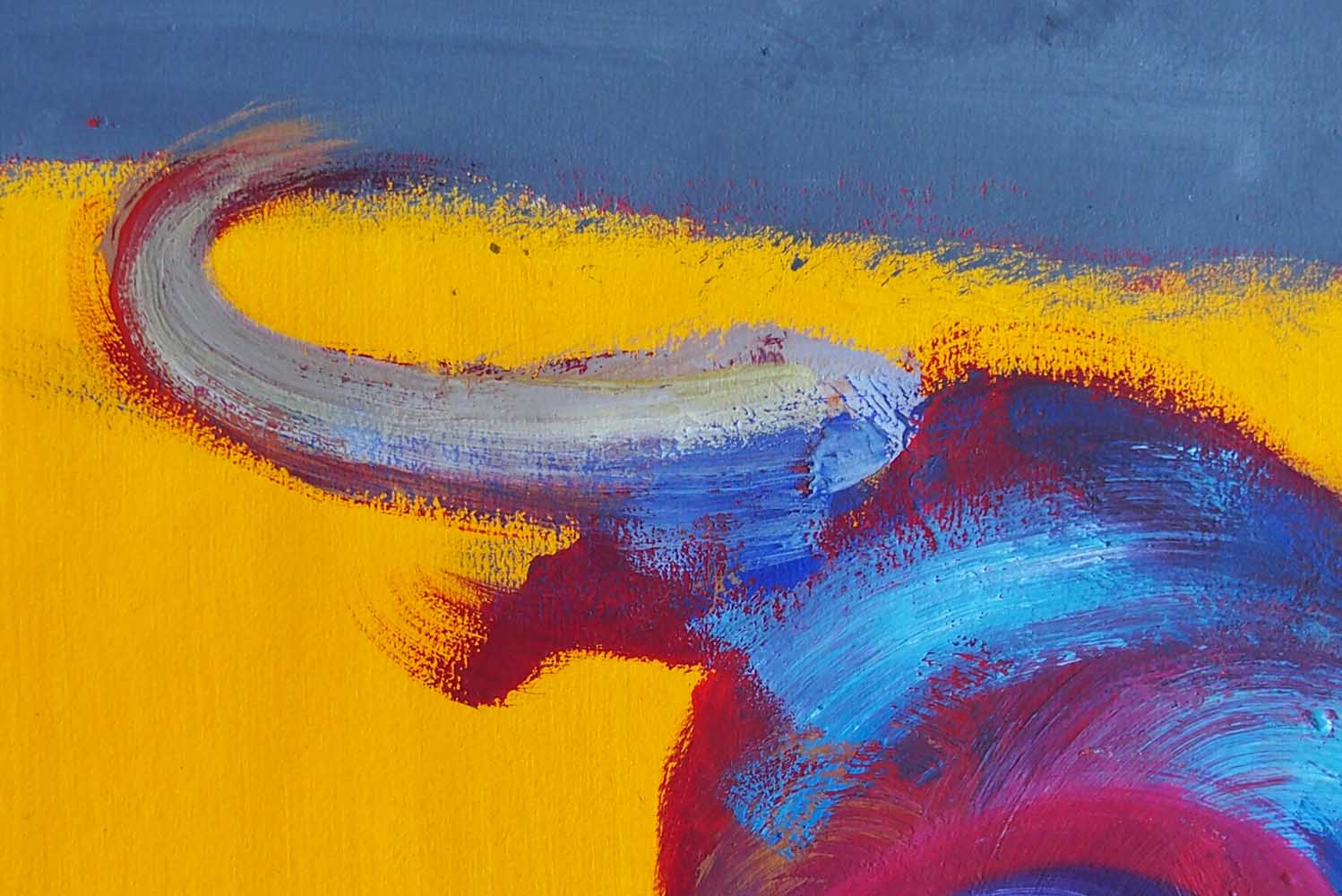 The artist is treating, with this series, a very controversial subject: the bullfight. But rather than depicting the confrontation between man and beast, the violence and slaying or the surrounds, Christophe Dupety focuses on the portrayal of the animal itself, which takes centre stage of his composition in a vertical format (65cm x 50cm) or square format (100cm x 100cm).