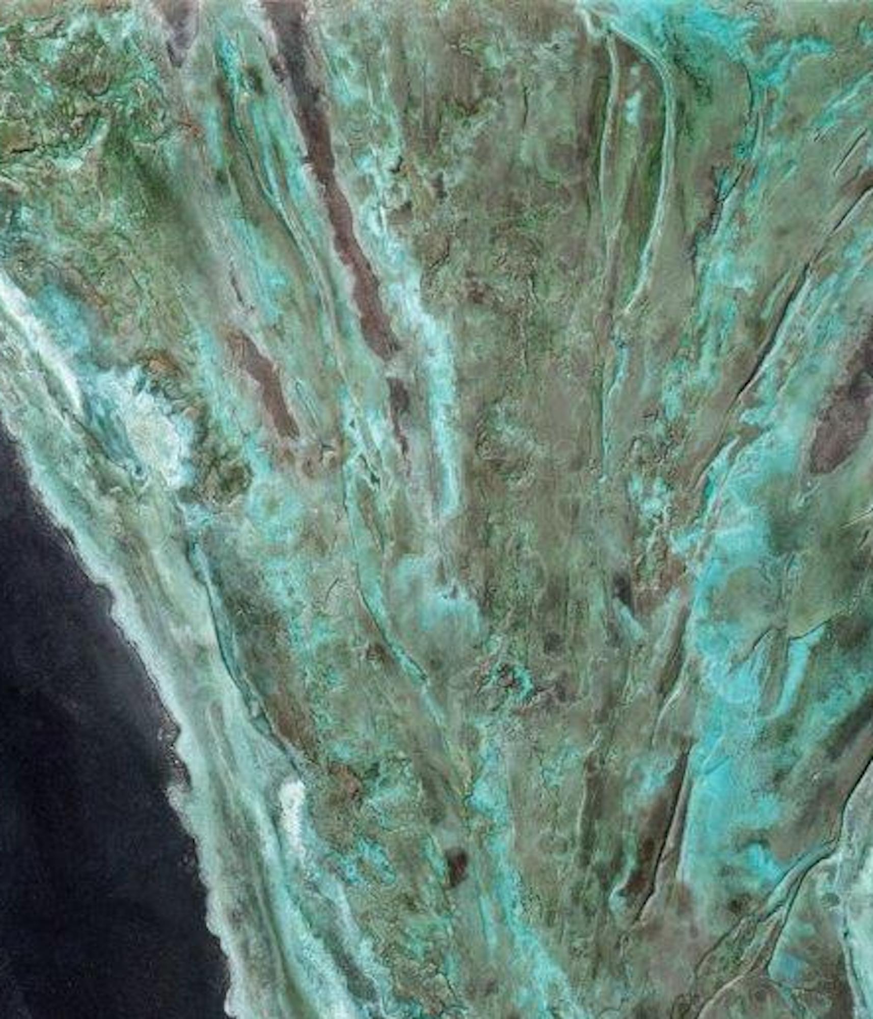 The Awakening of the Abyss is an artwork by French contemporary artist Frédérique Domergue, made with oxidized zinc and bronze leaves on aluminium.