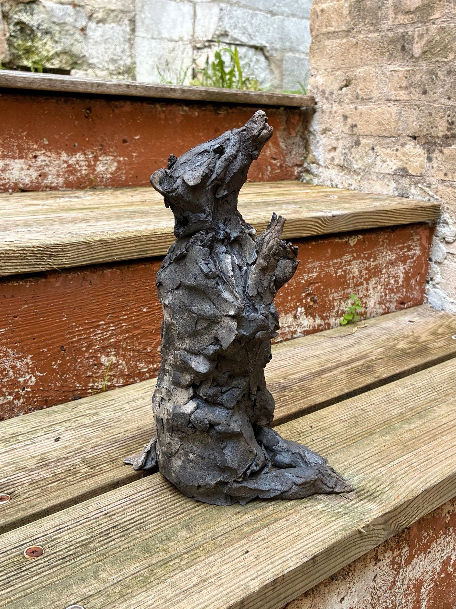 The beasts (badger) is a smoke-fired stoneware sculpture by the contemporary French artist Cécile Raynal. This sculpture depicts a badger standing on its hind legs, with its front paws joined in a dynamic gesture.