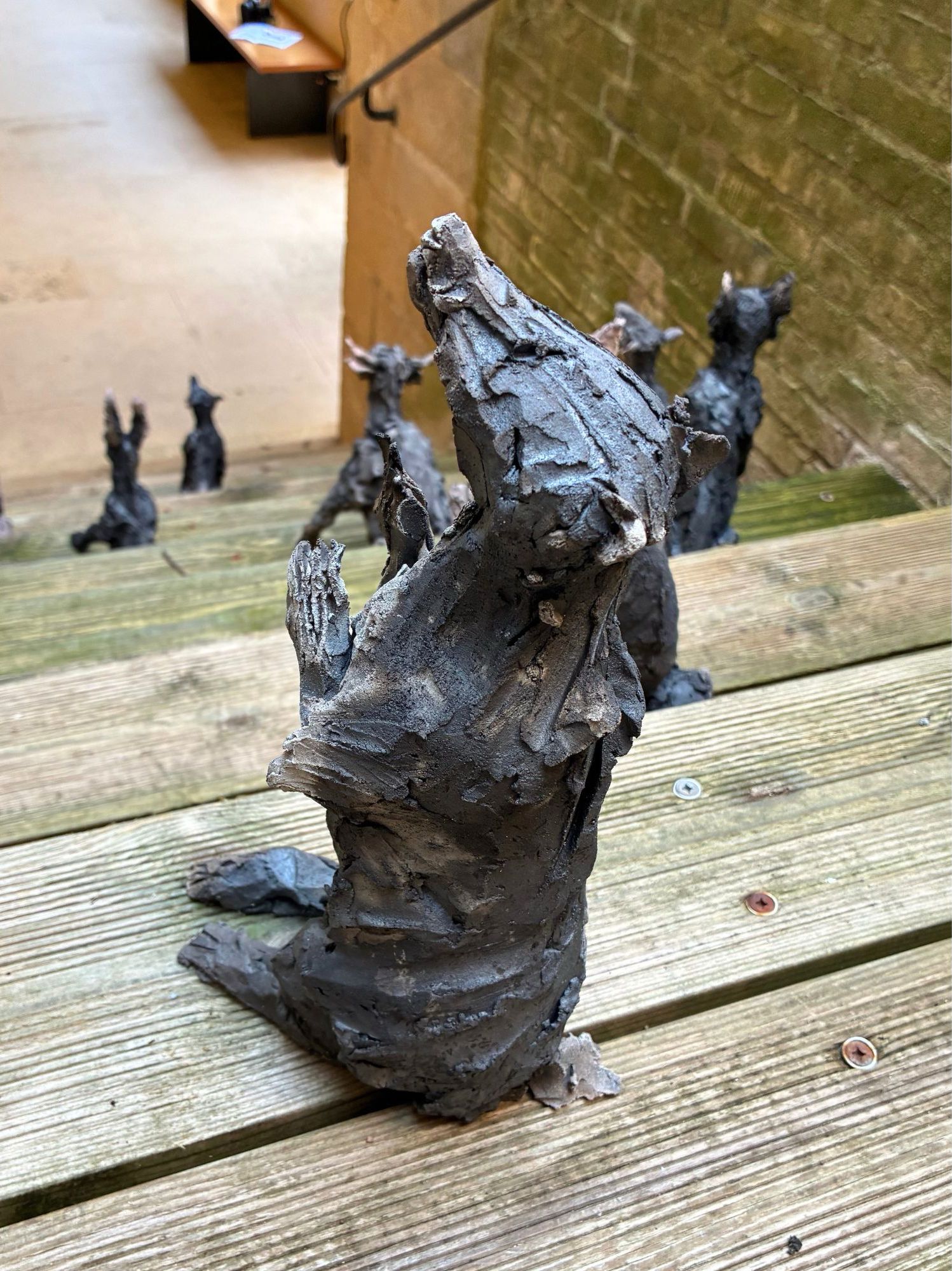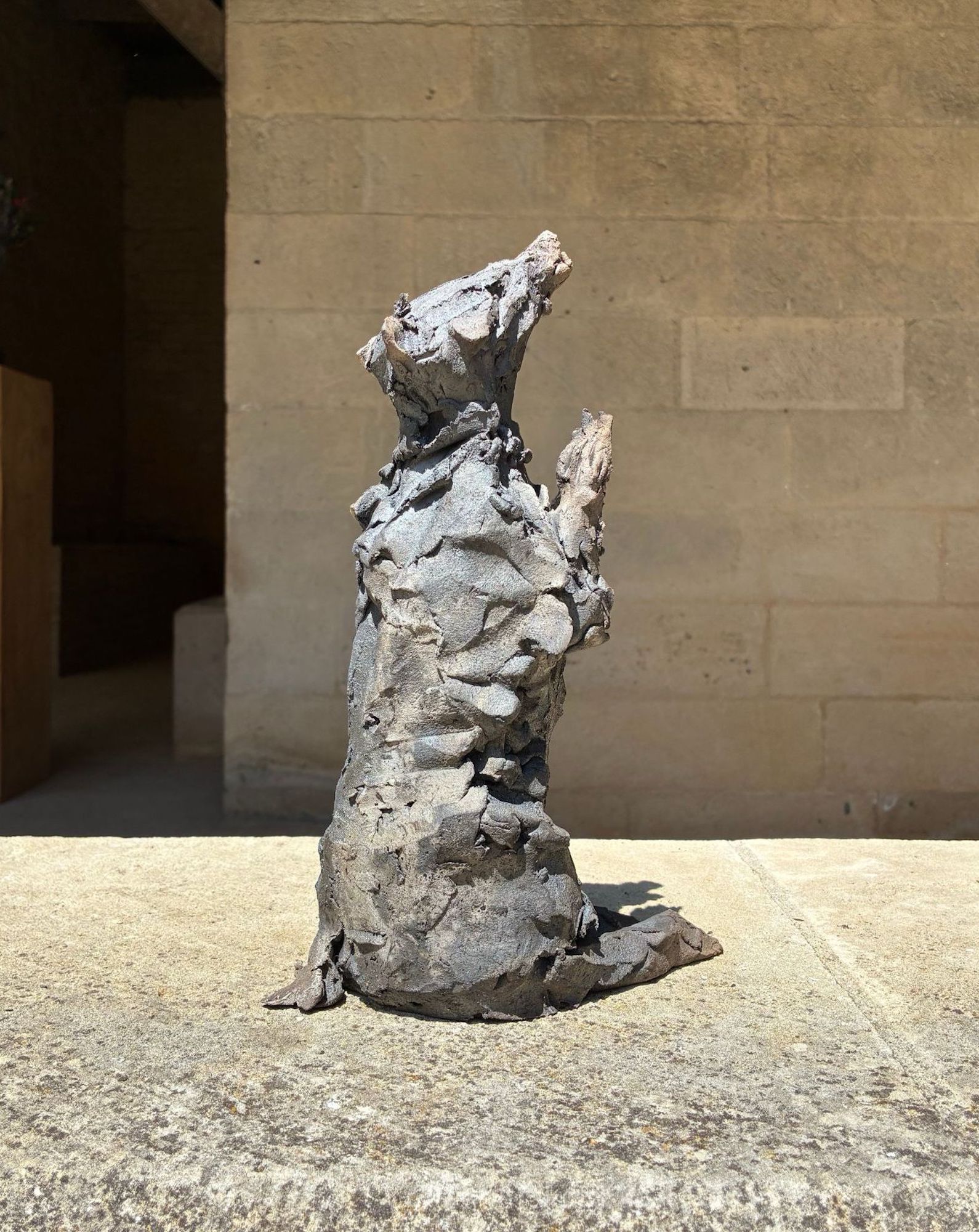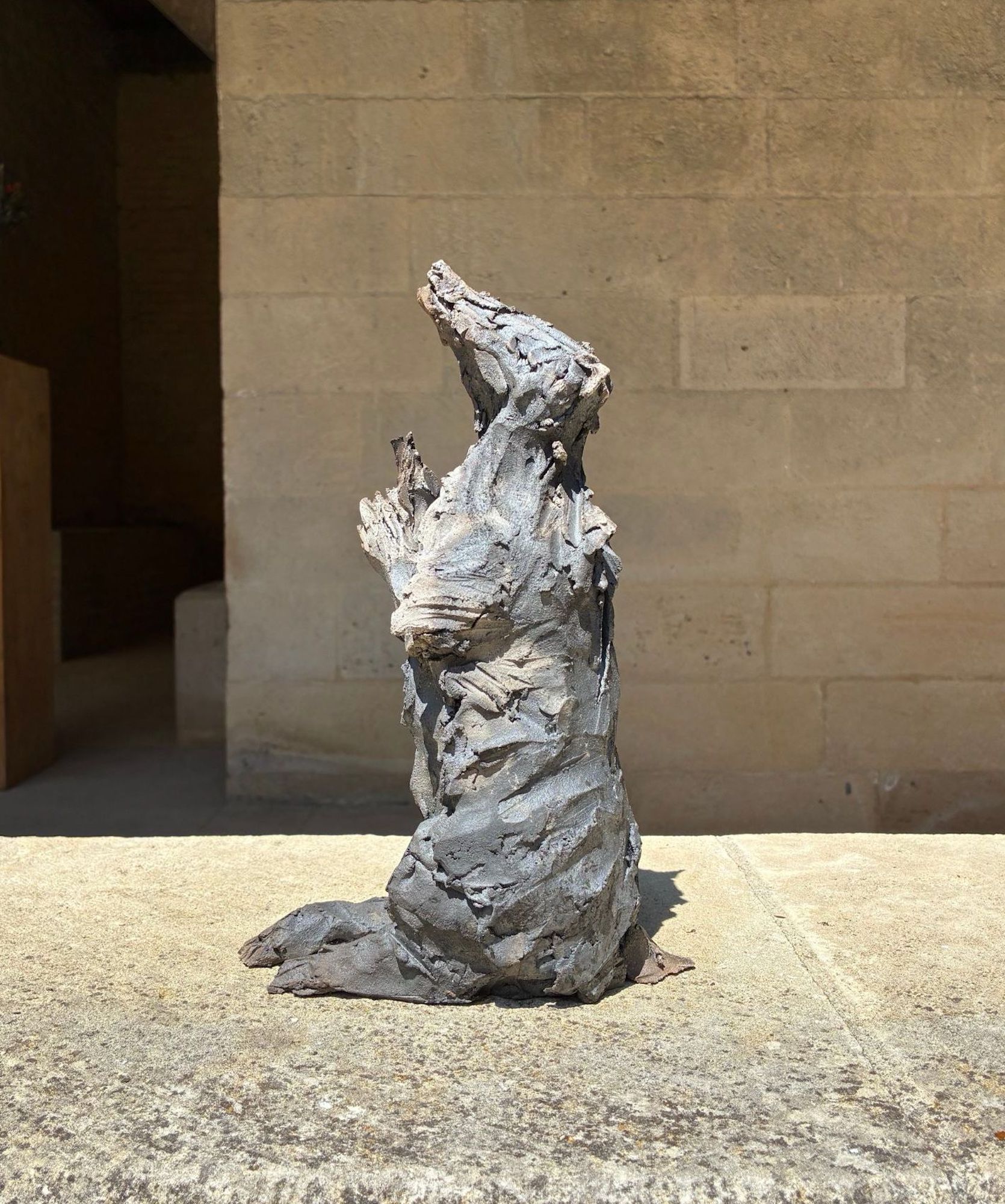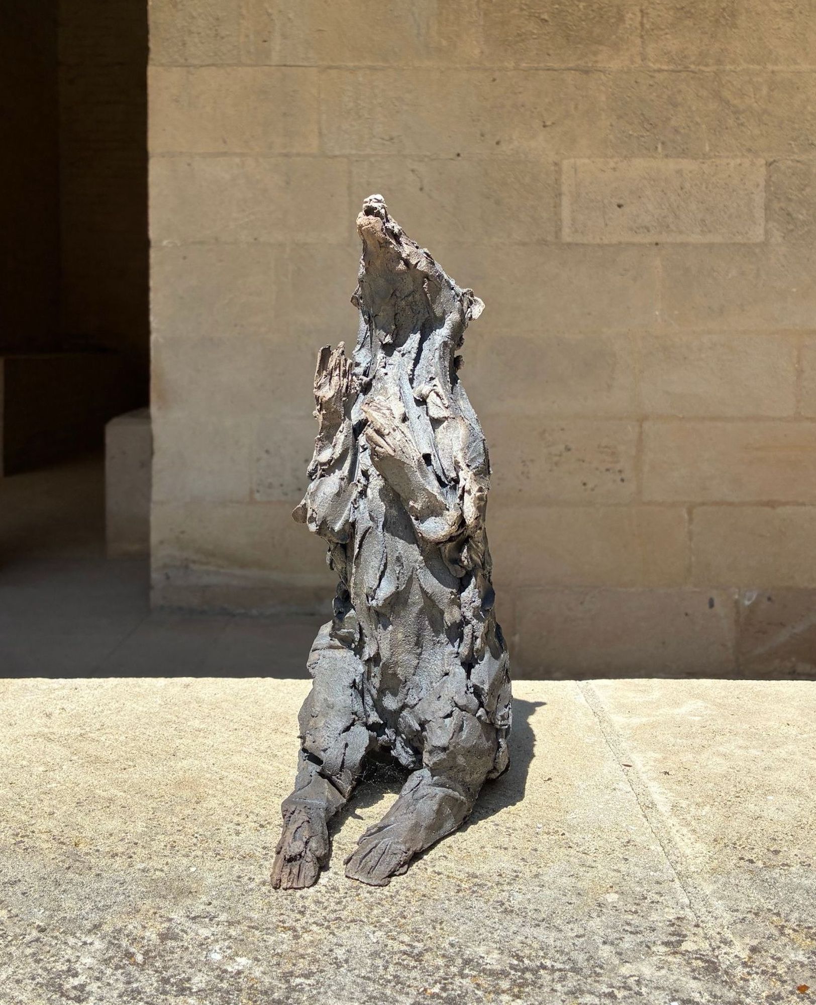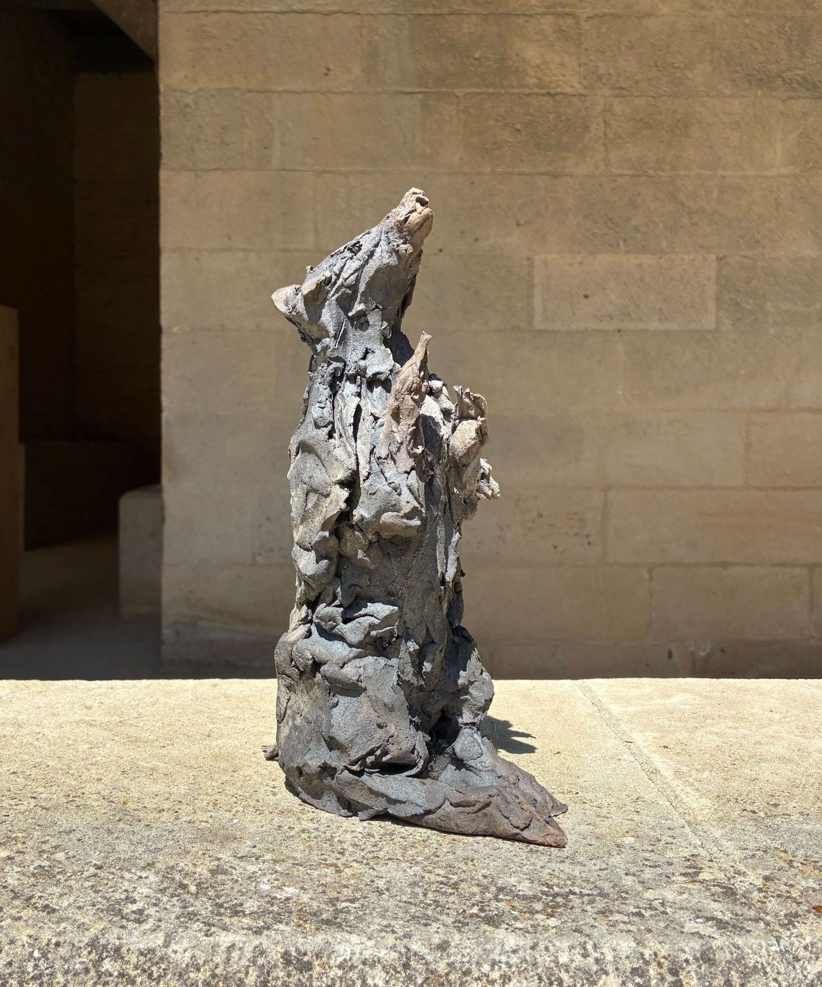 The installation Les bêtes (The beasts) has been exhibited at Cécile Raynal’s solo show À la table des Dames (At the Ladies’ table), at Montivilliers Abbey in Normandy (2025). In this historic site, long home to women, nuns and abbesses, the sculptor has chosen to present works combining portraits of women and animals. Cécile Raynal’s sculptures do not seek to seduce, and can even sometimes appear disturbing. Rough, they bear the marks of a passage through matter, through trial, and yet they stand upright, alive. They conjure up a world in which the animal, feminine, instinctive or rebellious side is embraced as an essential force. In the restored Abbey, the exhibition retraces the last fifteen years of the French artist’s singular career (more information on the exhibition here).