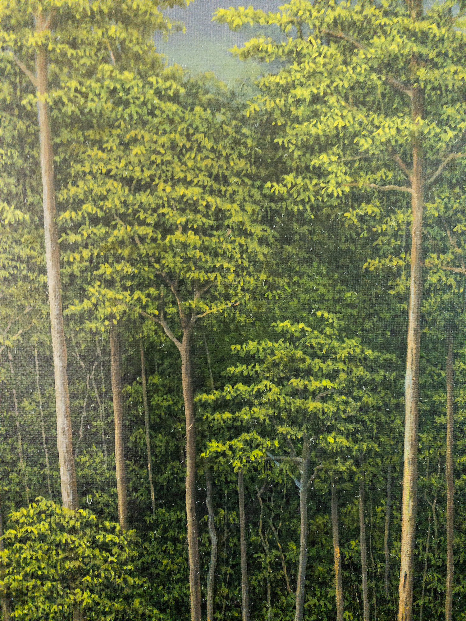 Using a precise and meticulous technique, the artist builds up the landscape tree by tree, leaf by leaf. For him, the creative process is also an inner adventure, in which time no longer exists. The painter brings the painting to life but then allows himself to be transported and guided by the work itself, which suggests how it should be composed. This timelessness in creation is reflected in his works: are we in the present, the future or the past?