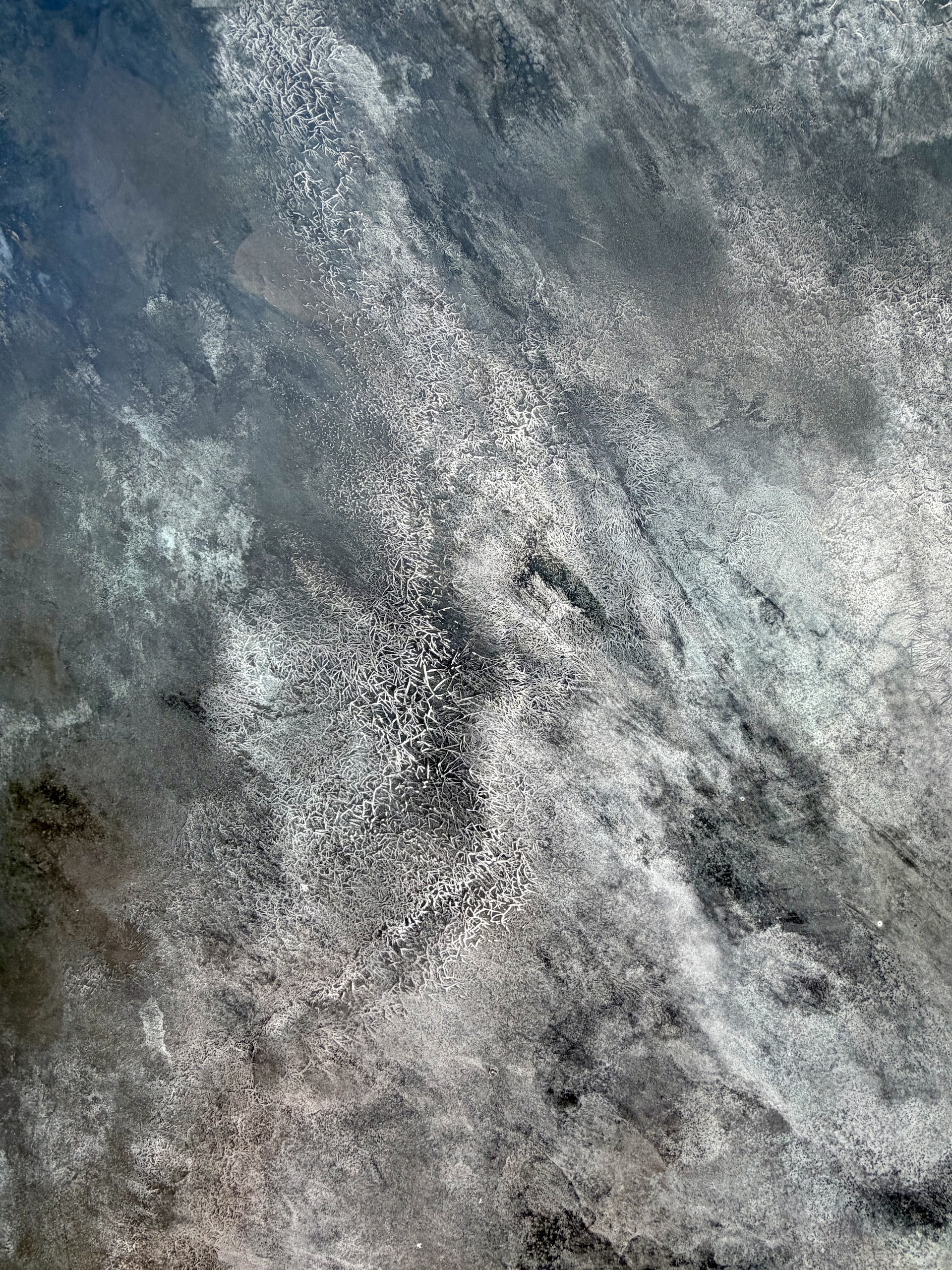 Threshold II is an artwork by French contemporary artist Frédérique Domergue, crafted with oxidized zinc, steel and bronze leaves on an honeycomb aluminum panel.