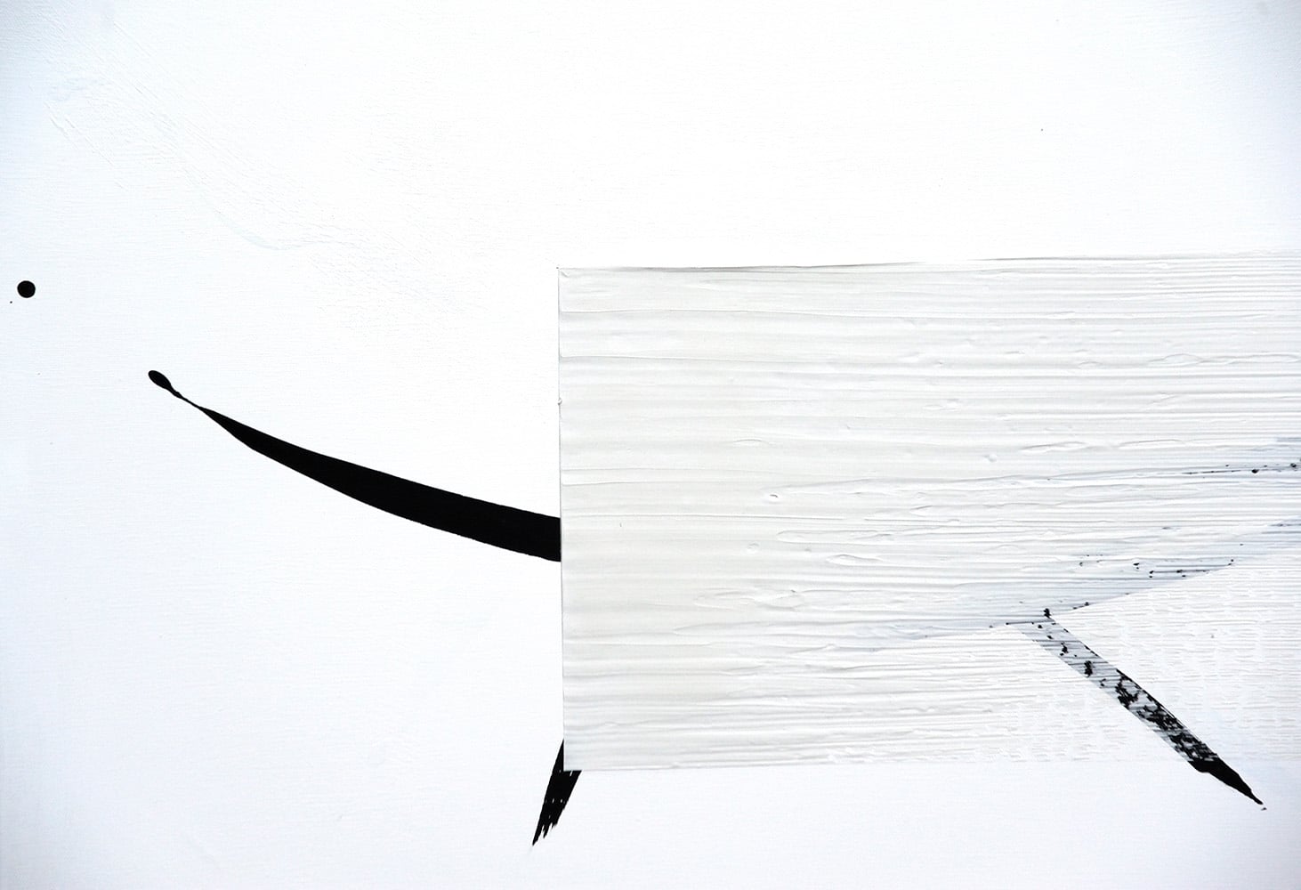 This artwork belongs to an abstract register and draws its influences from Japanese calligraphy. The brushstrokes, vigorous and yet elegant, are clearly visible and suggest the painter’s gestures. The black and white colors intersect on the canvas, creating layers and transparencies. This painting, created with ink and acrylic, seems to spread a sort of energy and at the same time it invites to meditation.