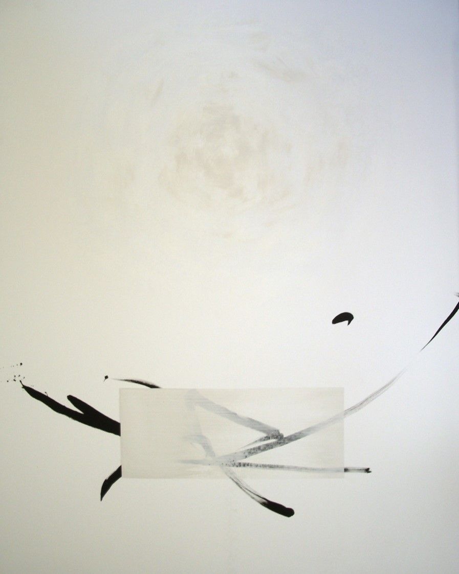 This artwork belongs to an abstract register and draws its influences from Japanese calligraphy. The brushstrokes, vigorous and yet elegant, are clearly visible and suggest the painter’s gestures. The black and white colors intersect on the canvas, creating layers and transparencies. This painting, created with ink and acrylic, seems to spread a sort of energy and at the same time it invites to meditation.
