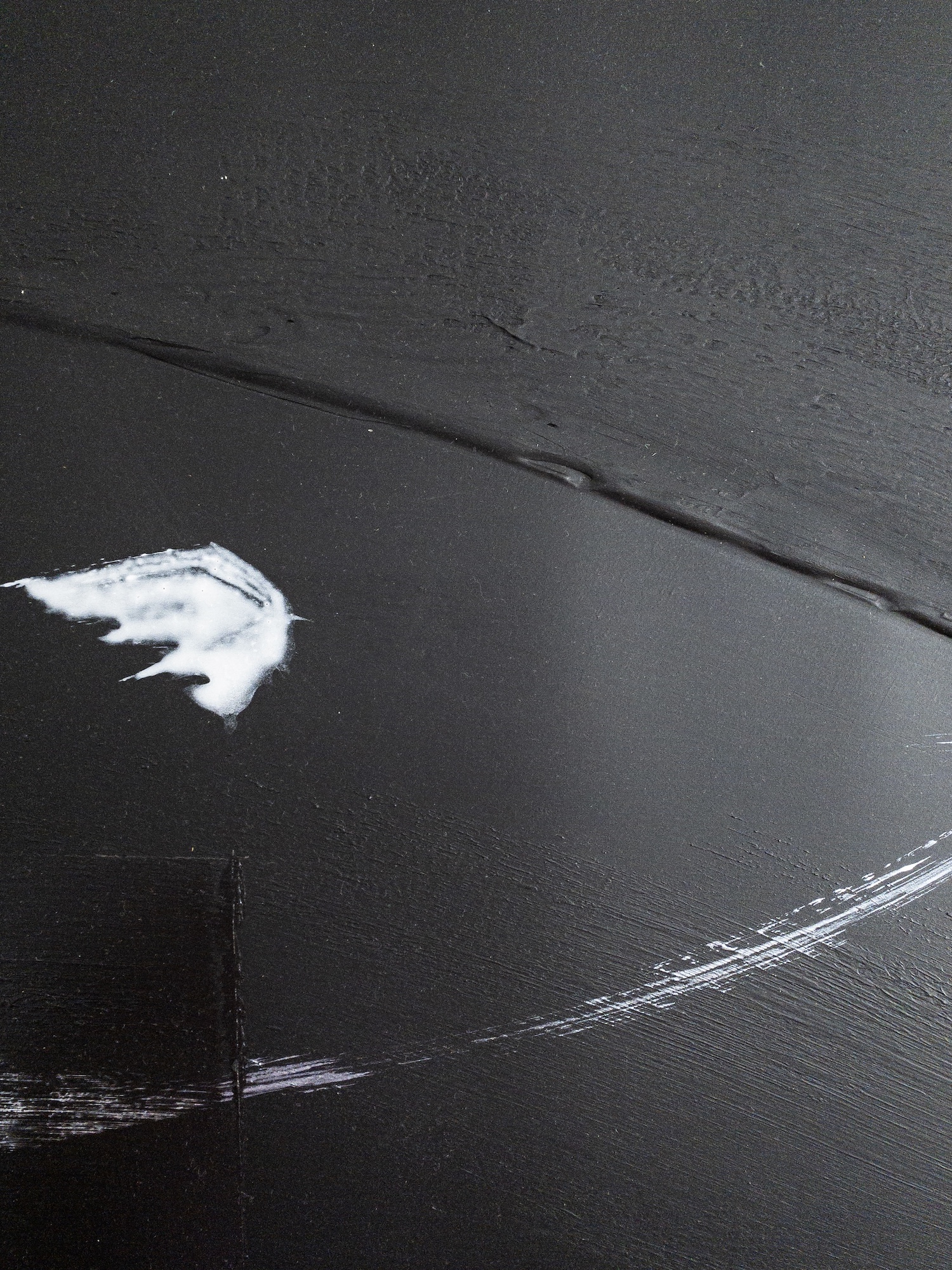 This artwork belongs to an abstract register and draws its influences from Japanese calligraphy. The brushstrokes, vigorous and yet elegant, are clearly visible and suggest the painter’s gestures. The black and white colors intersect on the canvas, creating layers and transparencies. This painting, created with ink and acrylic, seems to spread a sort of energy and at the same time it invites to meditation.