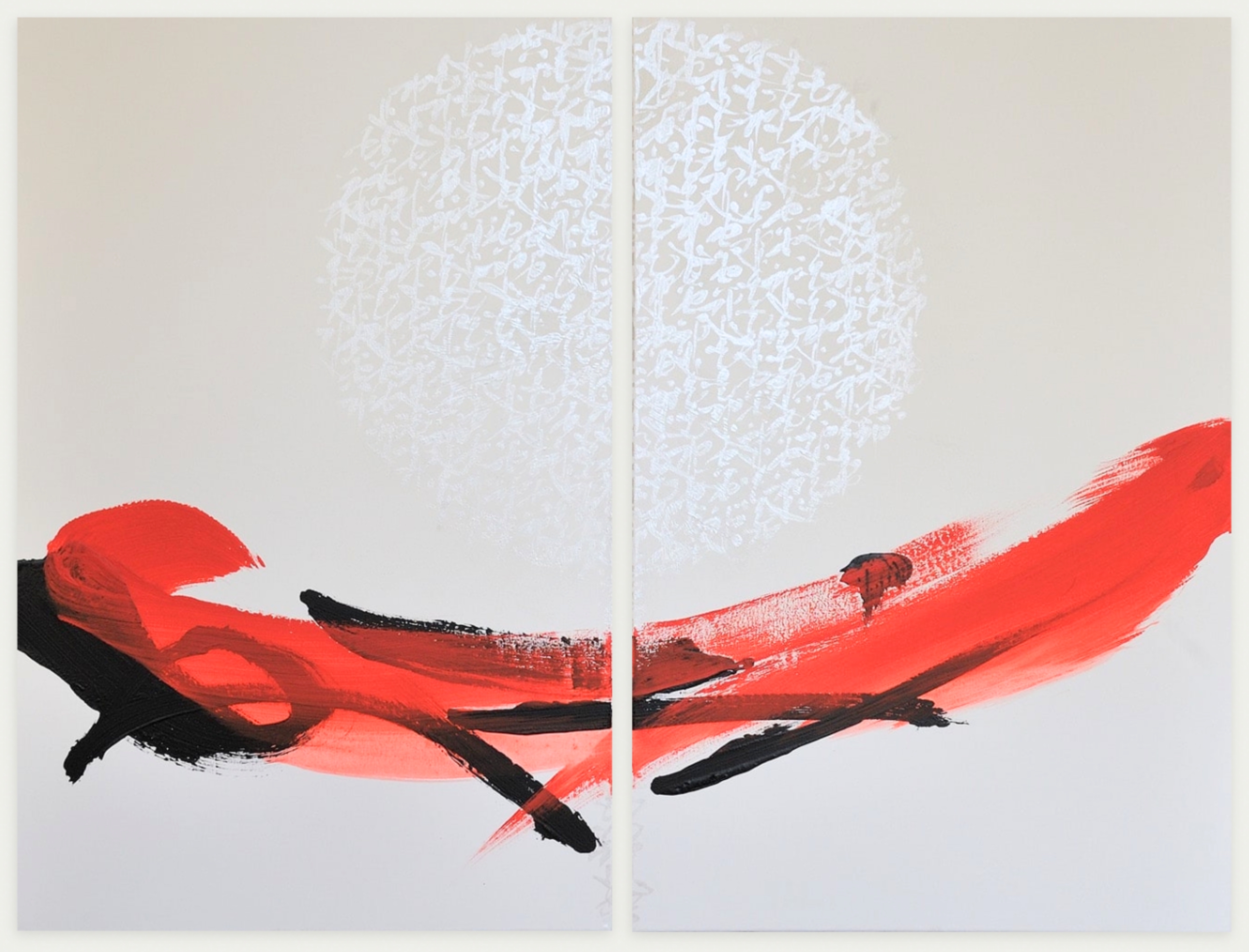 | Tags | Acrylic artwork|calligraphy|diptych|ink|red|white |