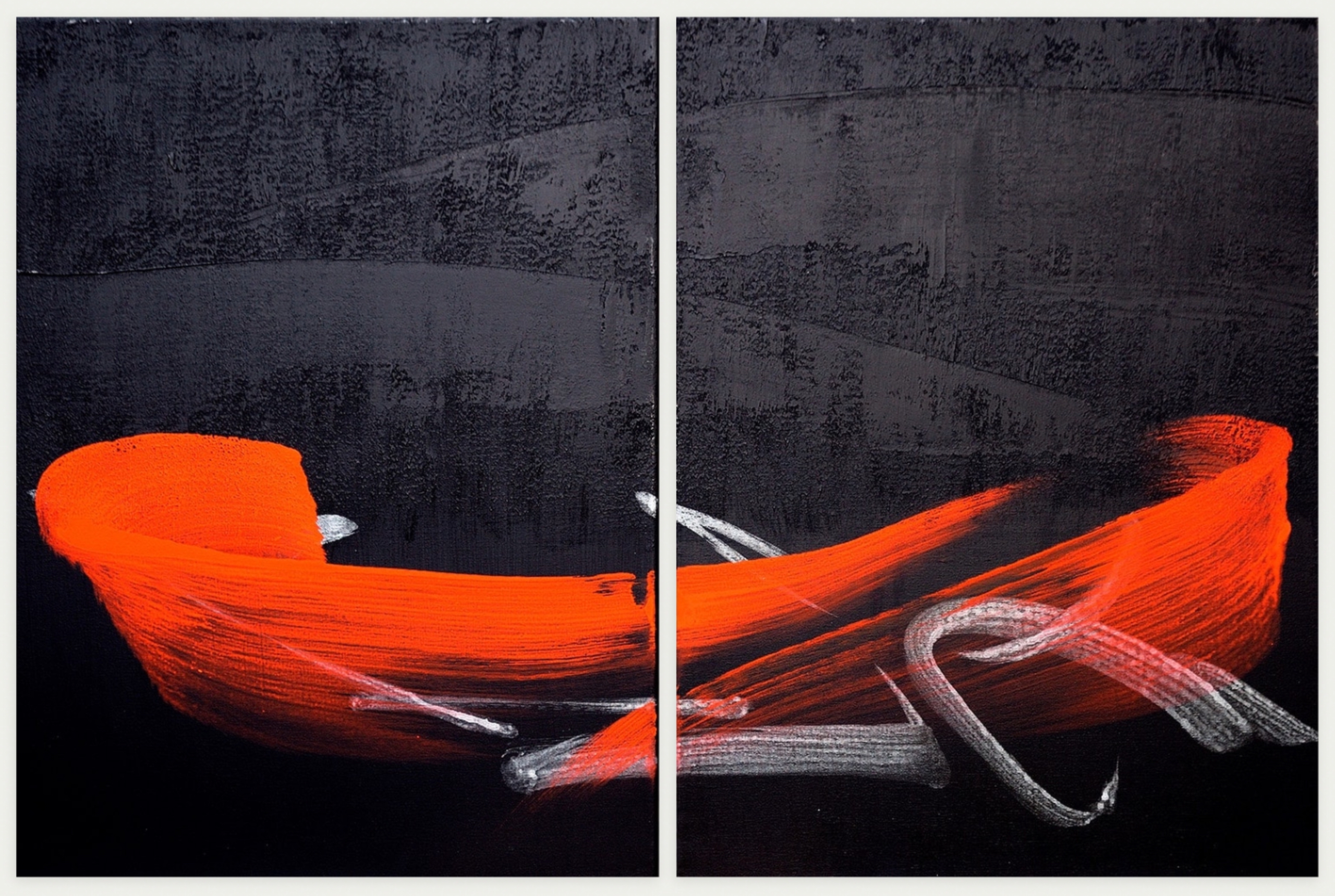 This artwork is a diptych composed by two panels measuring 70 cm x 50 cm each.