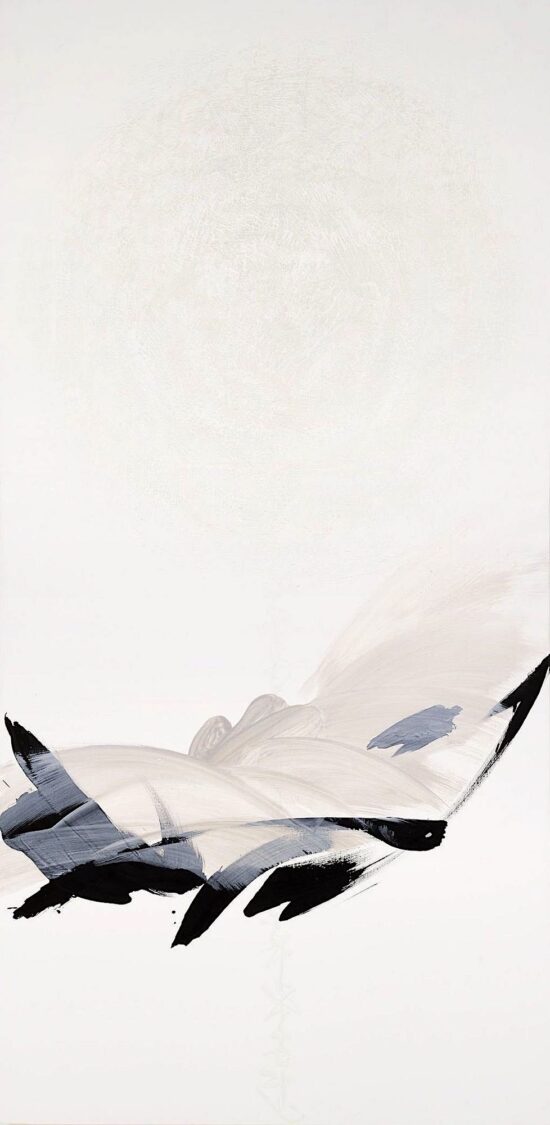 Coming from a family of traditional calligraphers, Hachiro Kanno paintings are a combination of his oriental heritage and western influences. The artist explores the possibilities of calligraphy, being the foundation to his style, and transforms it into abstract writing, “a writing that has become a painting”. Sometimes supple and voluptuous, sometimes tense and controlled, the lines show the gesture’s rapidity or, on the other hand, its slowness. With a reduced palette, Hachiro Kanno plays with the contrasts and with others: painted and empty spaces, shadow and light.