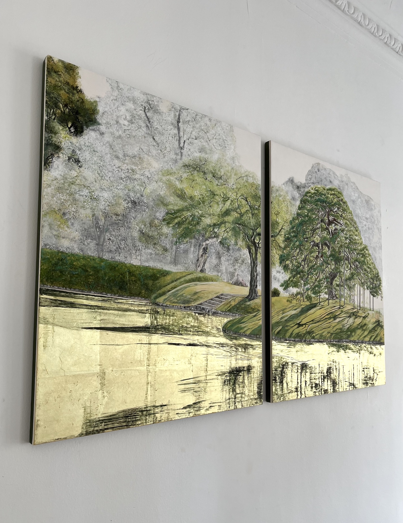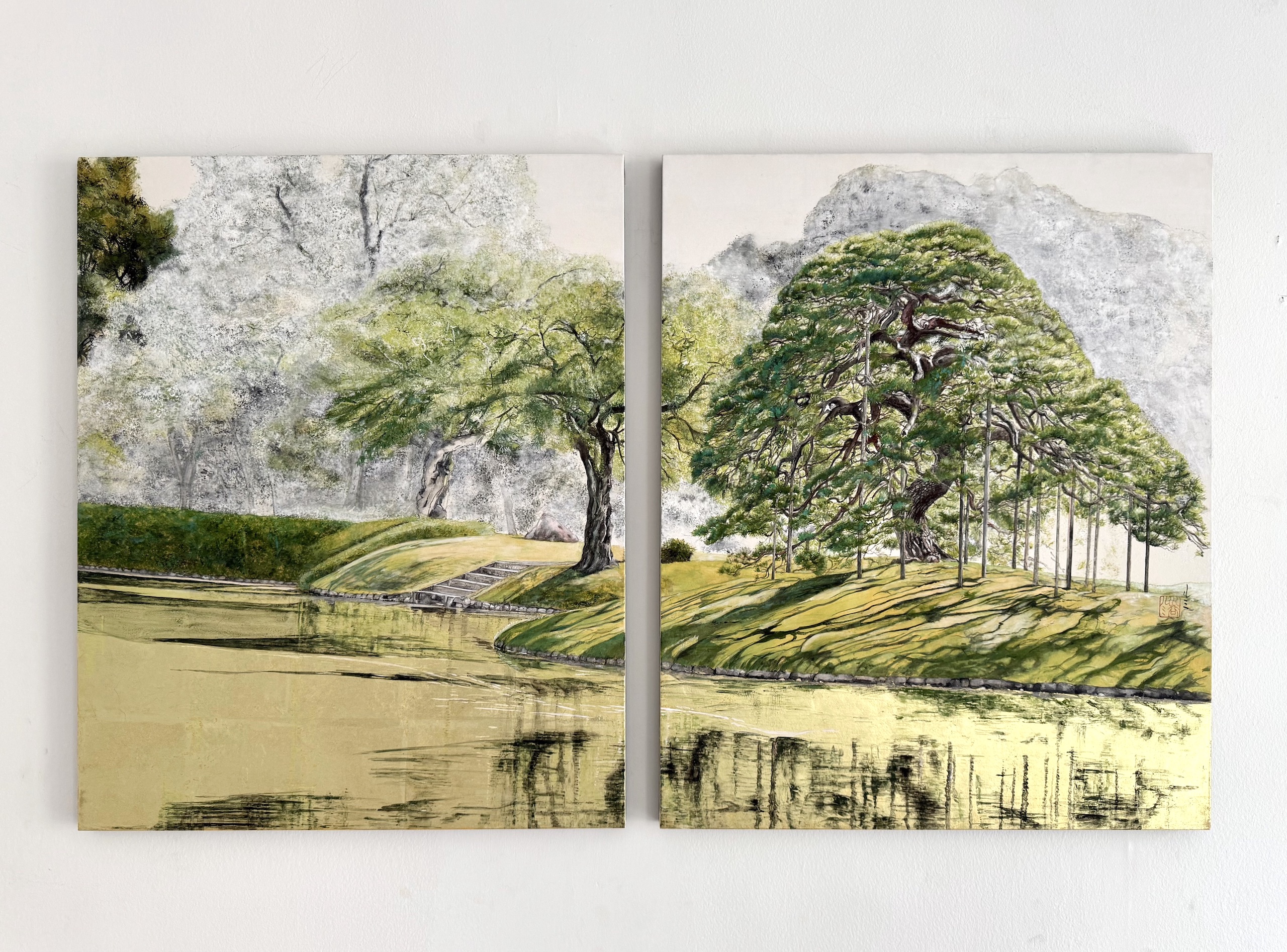 | Tags | diptych|gold leaf|green|ink|pigment|tree |
