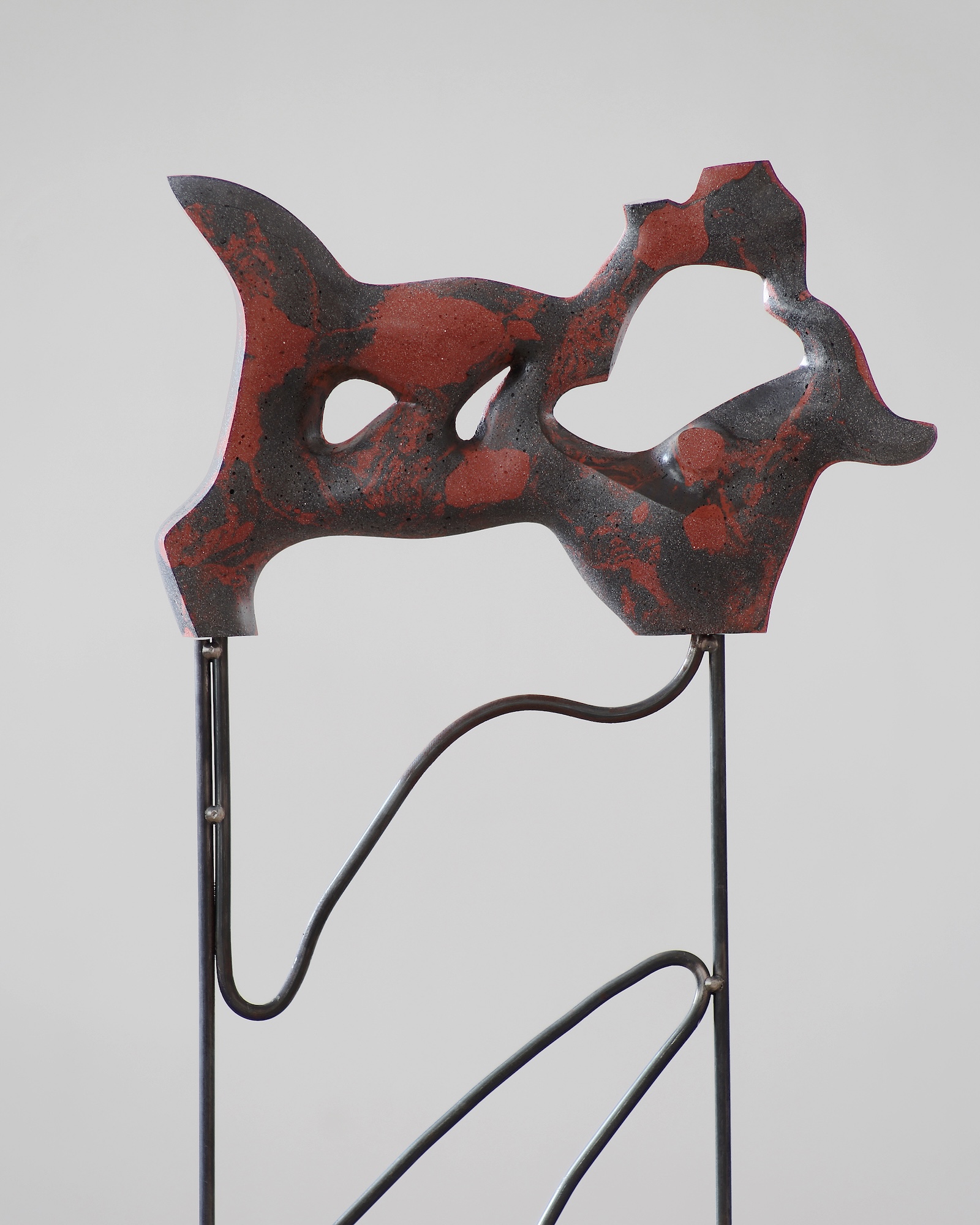 For this work, Pavlína Kvita takes the symbolism of red earth as her point of departure, a material tied to ancient myths of creation, life, and death. Red pigment was once used in rituals and burials, associated with protection, vitality, and the sacred bond to land and ancestry. These sculptures inspired by red earth, crafted from artificial stone, evoke ritual objects, hybrid beings, and totemic guardians. Placed on carefully designed geometric pedestals, her works challenge the boundary between sculpture and design, material and symbol.