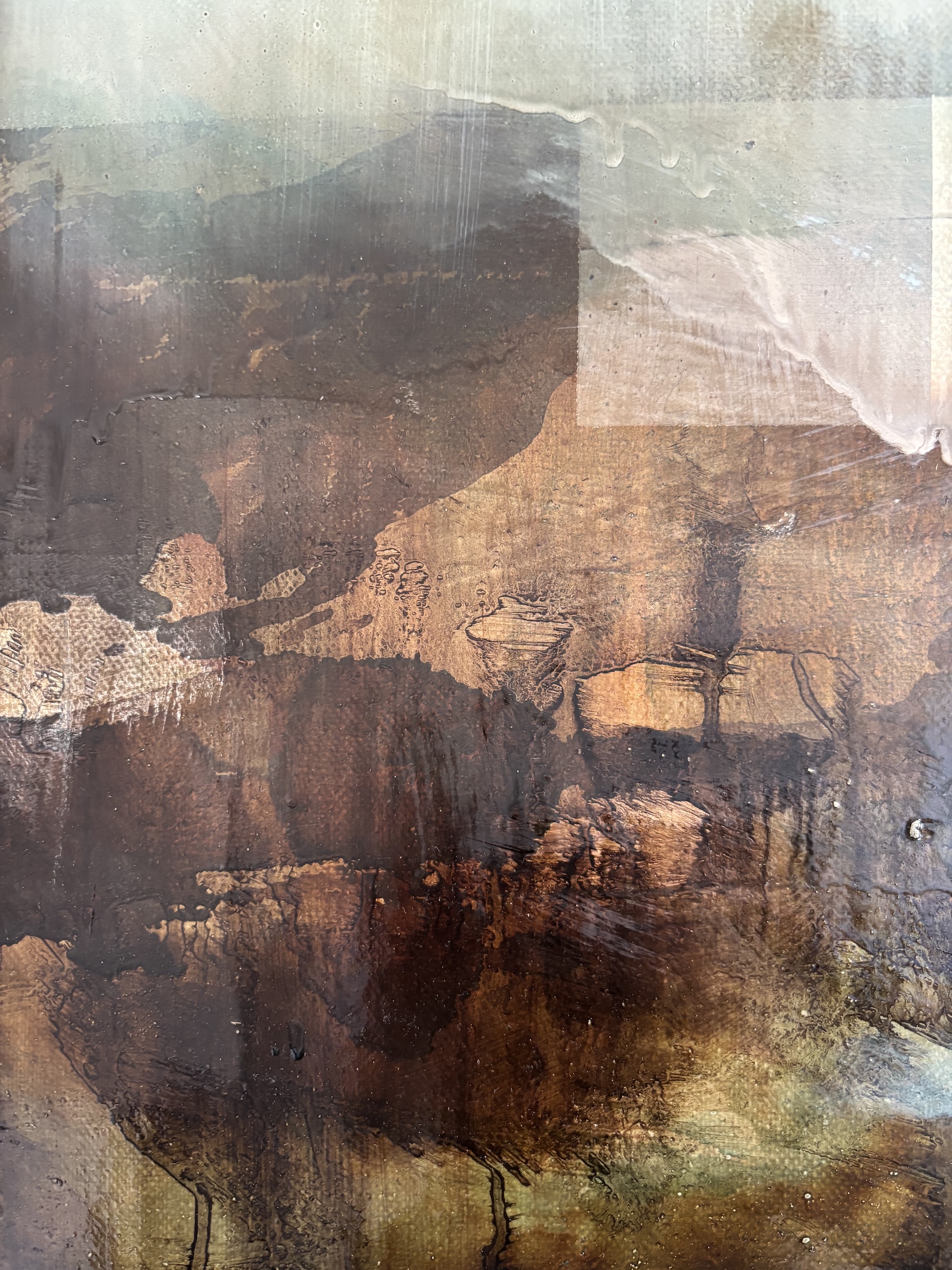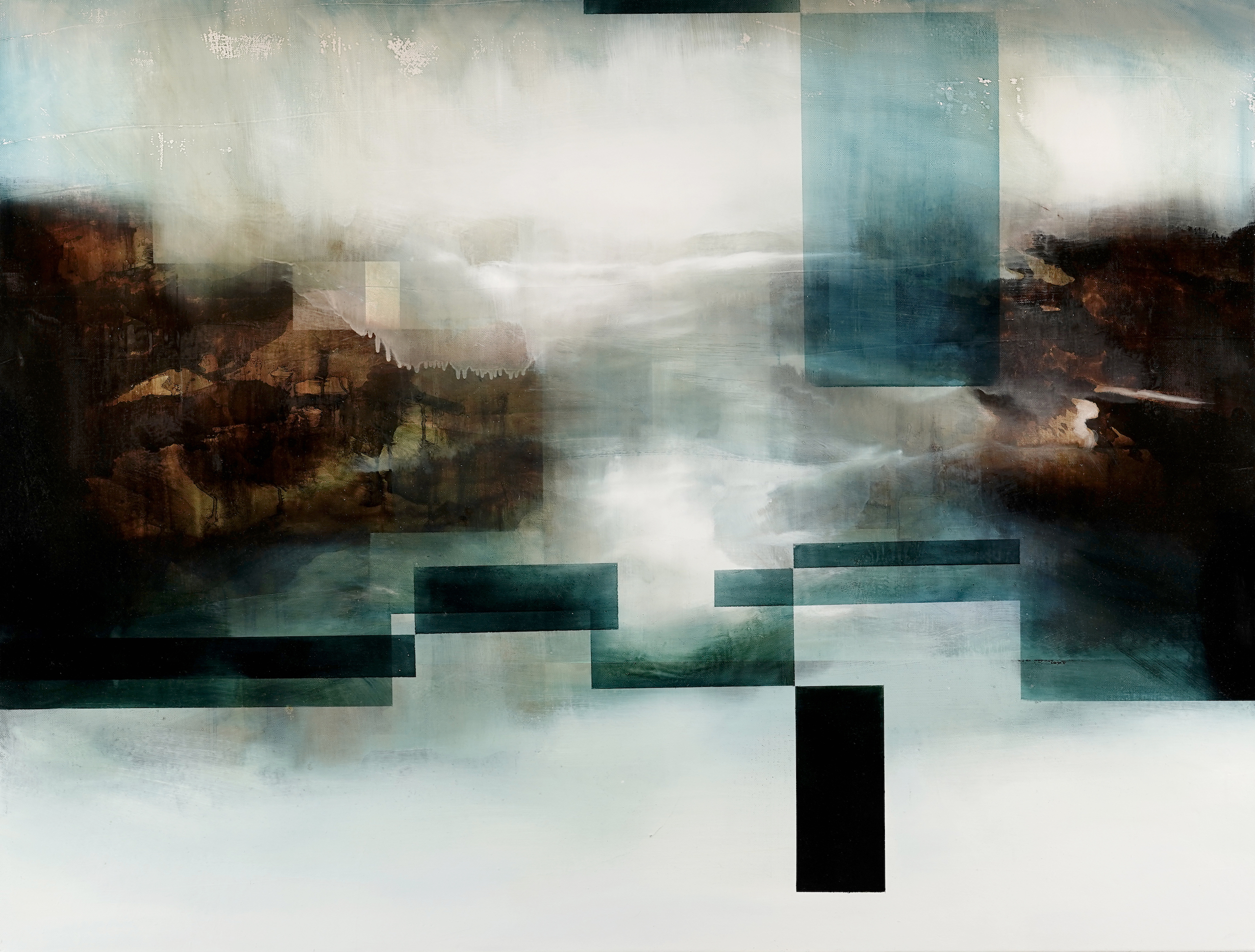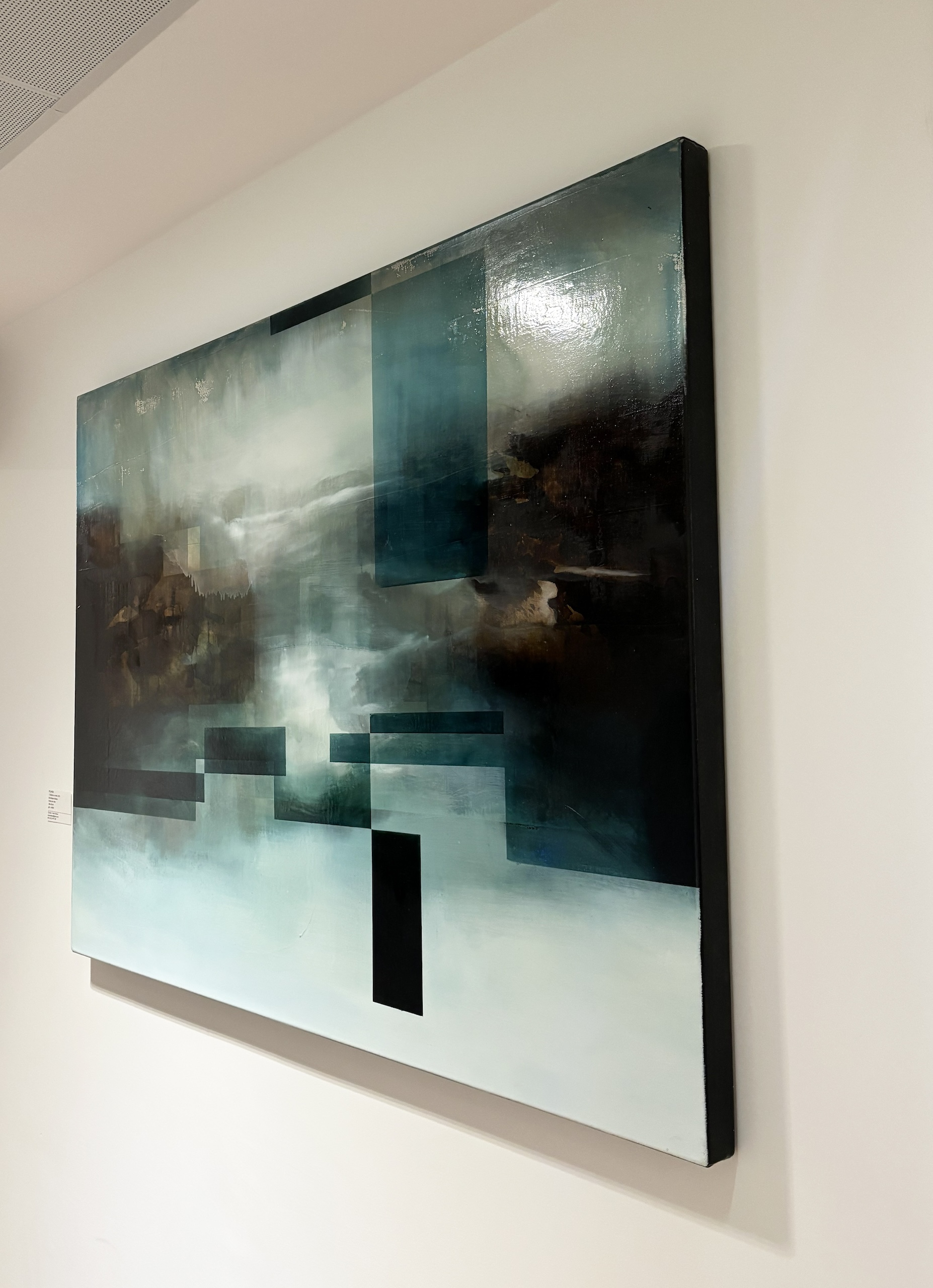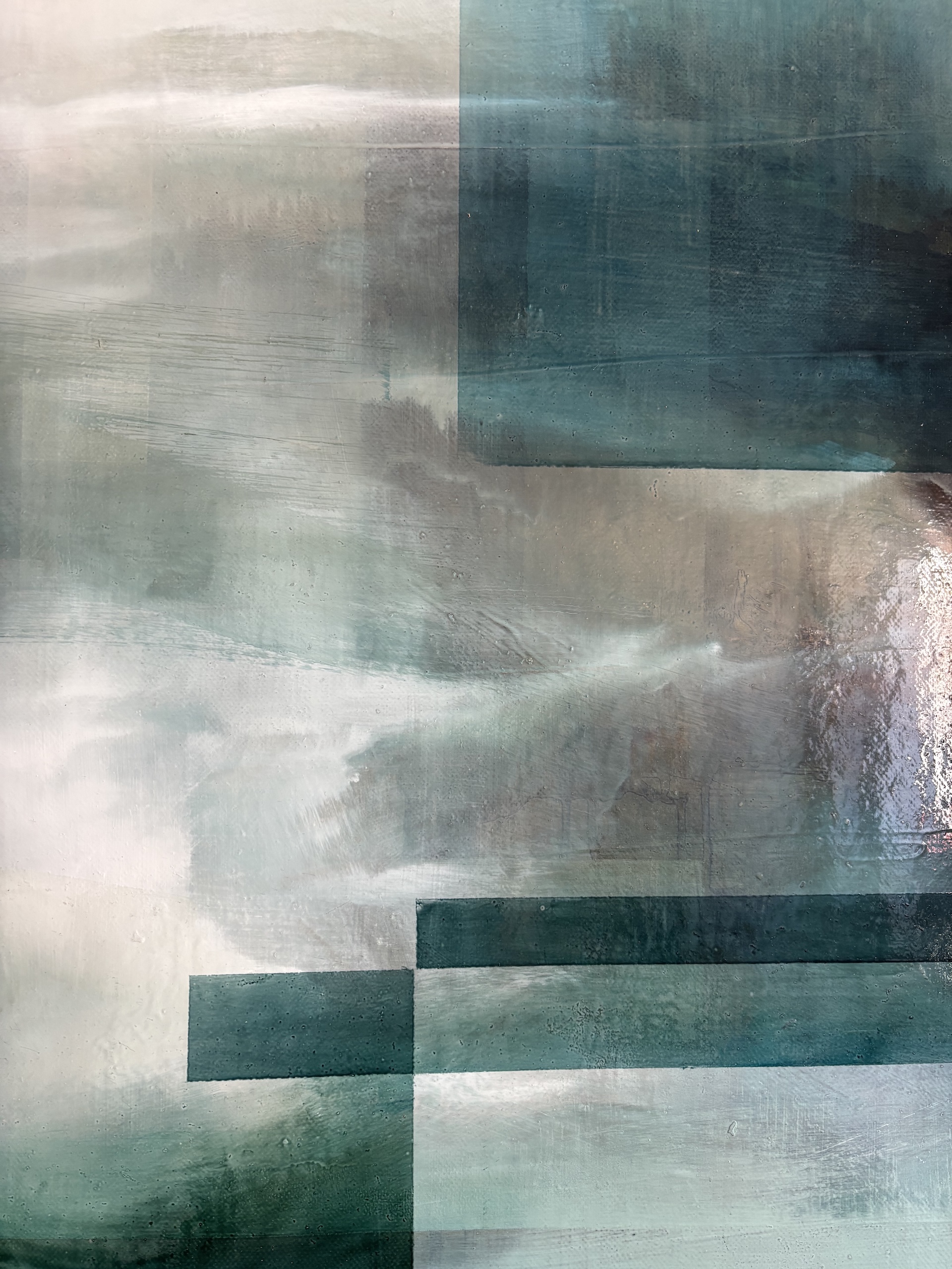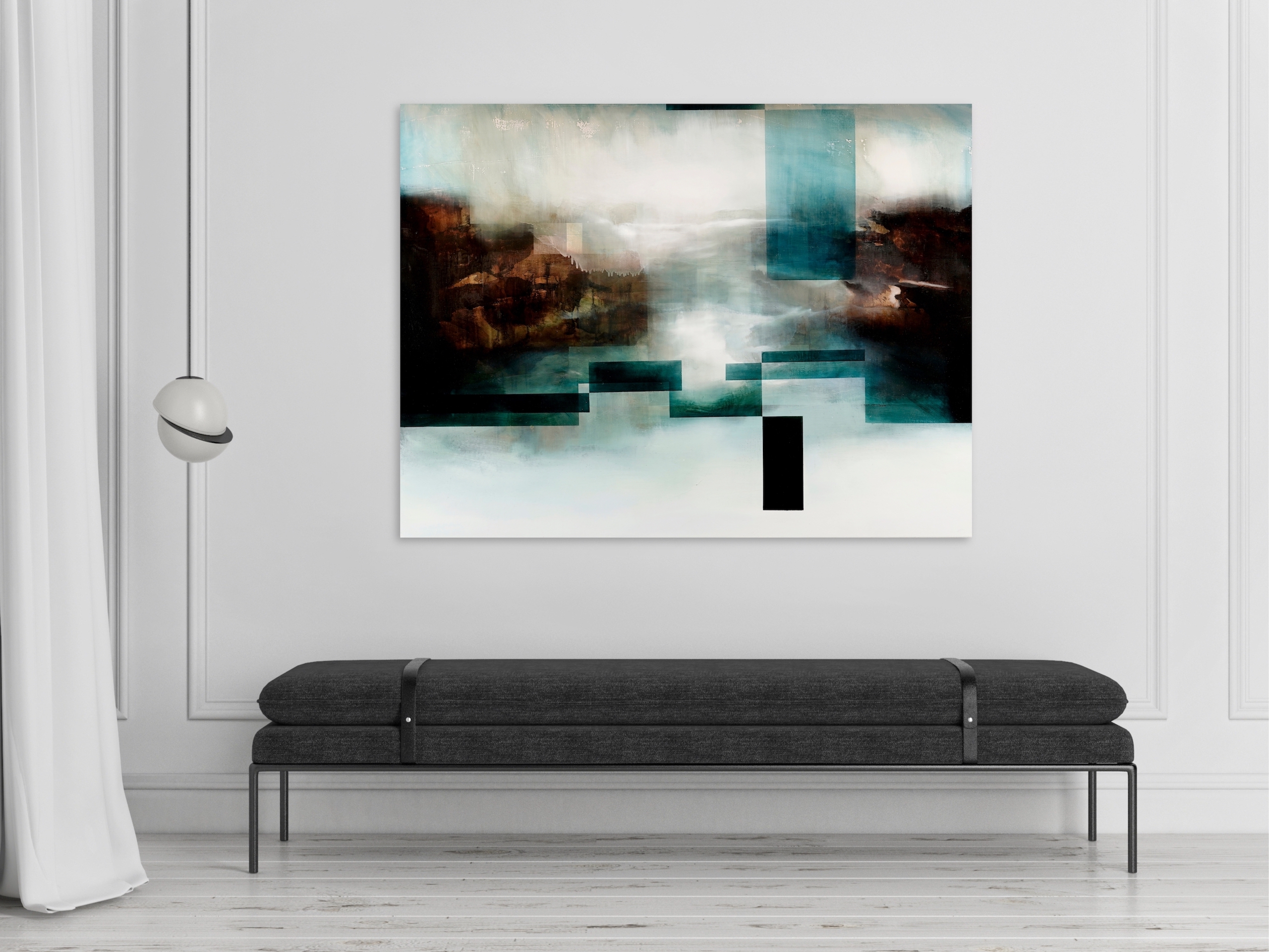Travelling Without Moving IV is a painting by Dutch contemporary artist Joachim van der Vlugt. This oil on canvas is an abstract composition, that can evoke a landscape painting.