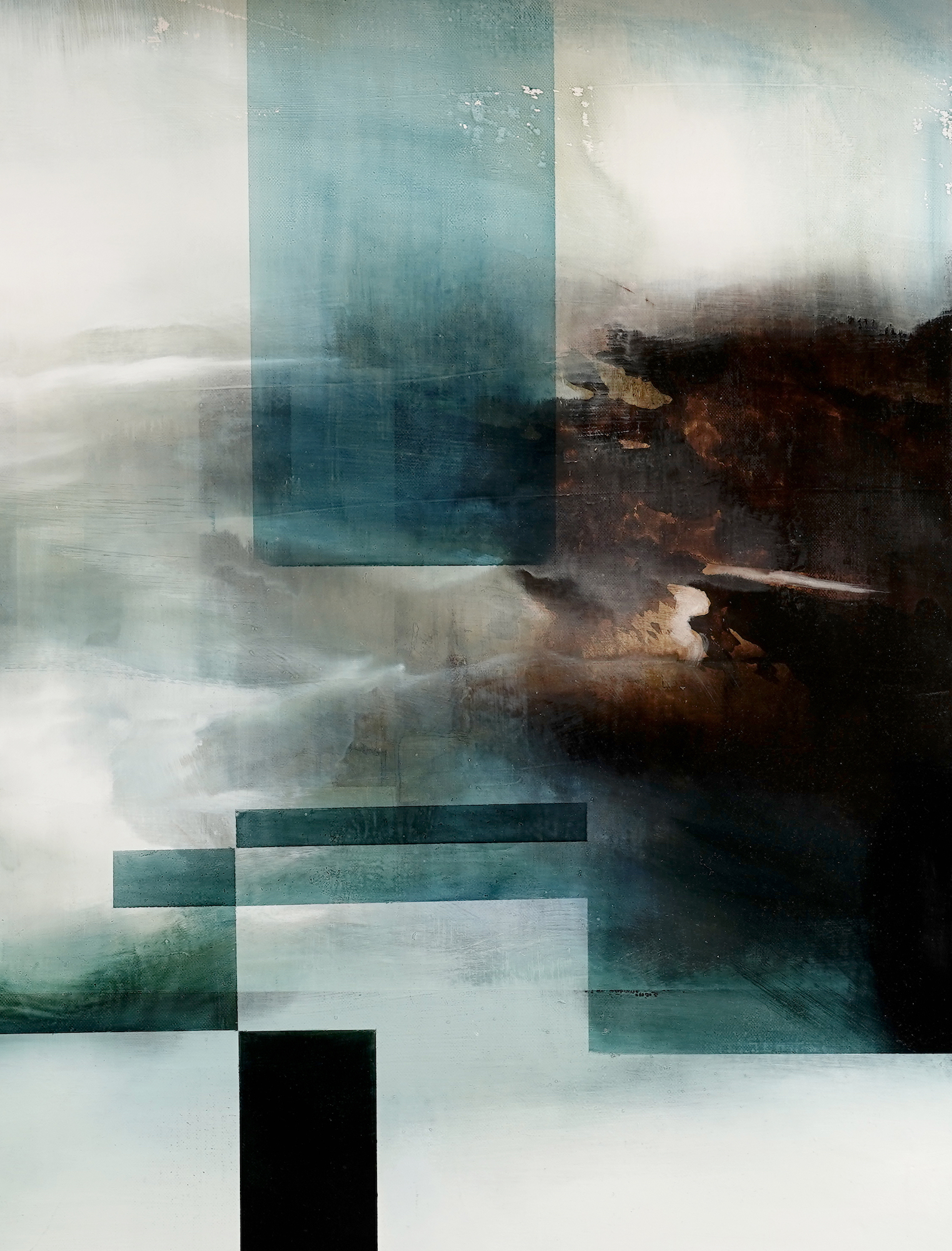 Joachim van der Vlugt art is strongly inspired by the classic Dutch masters. He intentionally uses a reduced dark colour palette: blacks and whites, browns, beiges and blues; the artist works the painting by building it up with several layers. The artist likes to work with light, with its’ subtlety and intensity. He combines into his artwork both shapes and geometric lines.