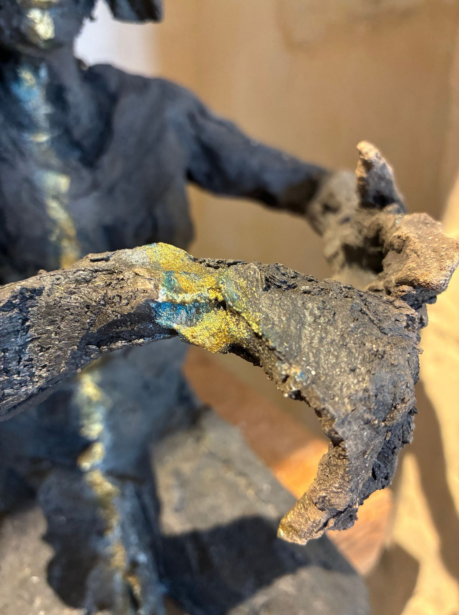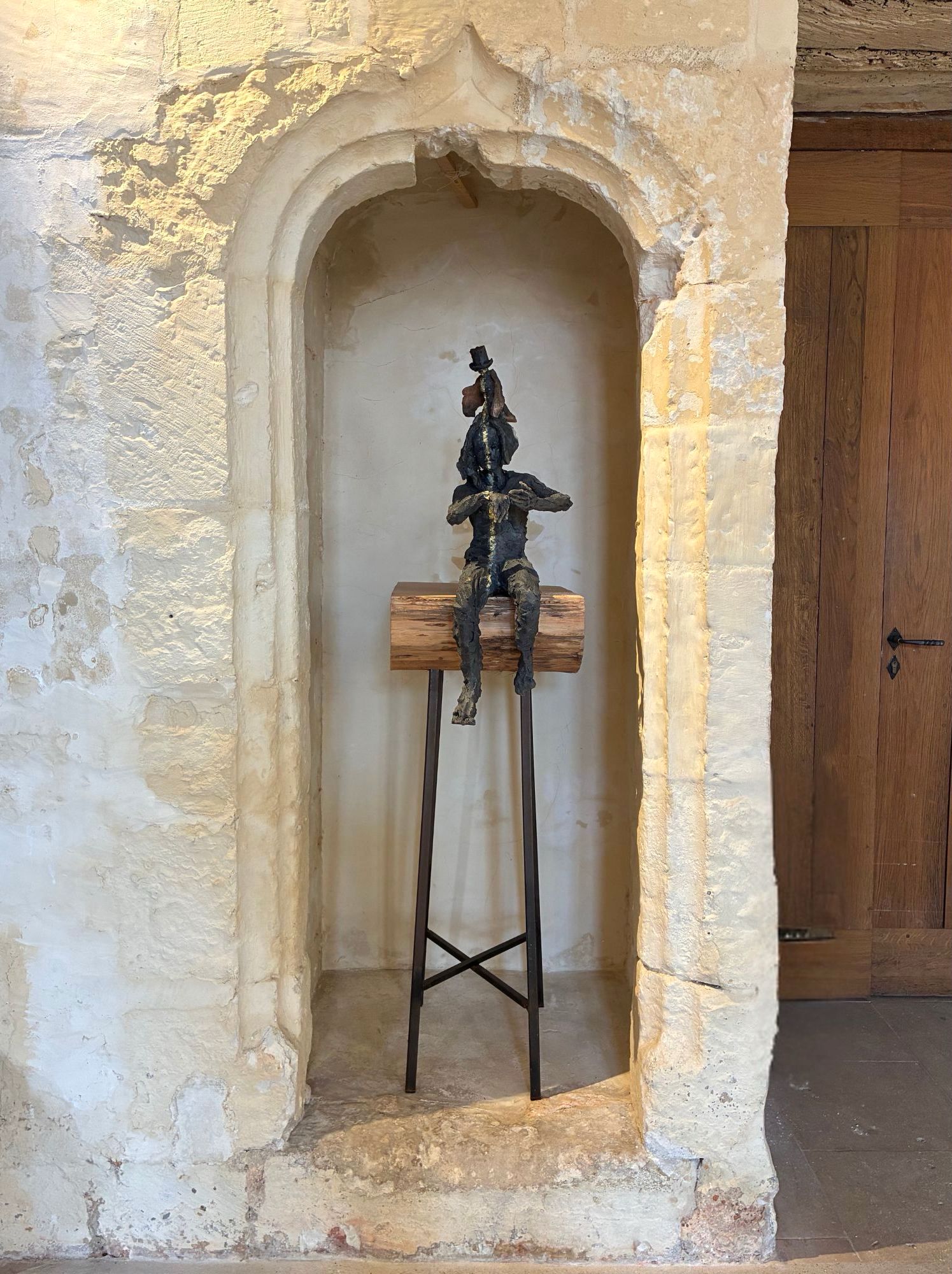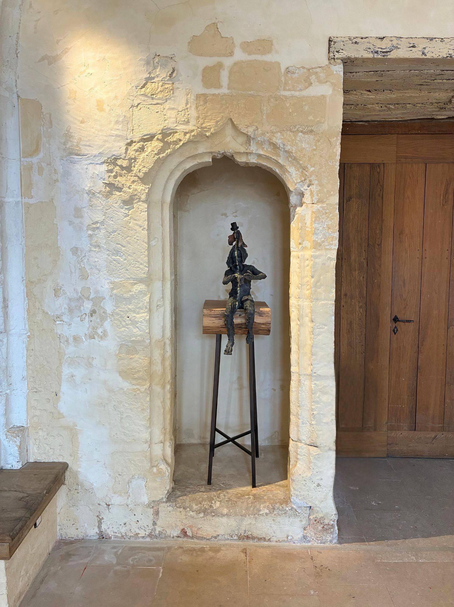 This sculpture has been exhibited at Cécile Raynal’s solo show at Montivilliers Abbey in Normandy (2025). In this historic site, long home to women, nuns and abbesses, the sculptor has chosen to present works combining portraits of women and animals. Cécile Raynal’s sculptures do not seek to seduce, and can even sometimes appear disturbing. Rough, they bear the marks of a passage through matter, through trial, and yet they stand upright, alive. They conjure up a world in which the animal, feminine, instinctive or rebellious side is embraced as an essential force. In the restored Abbey, the exhibition retraces the last fifteen years of the French artist’s singular career (more information on the exhibition here).