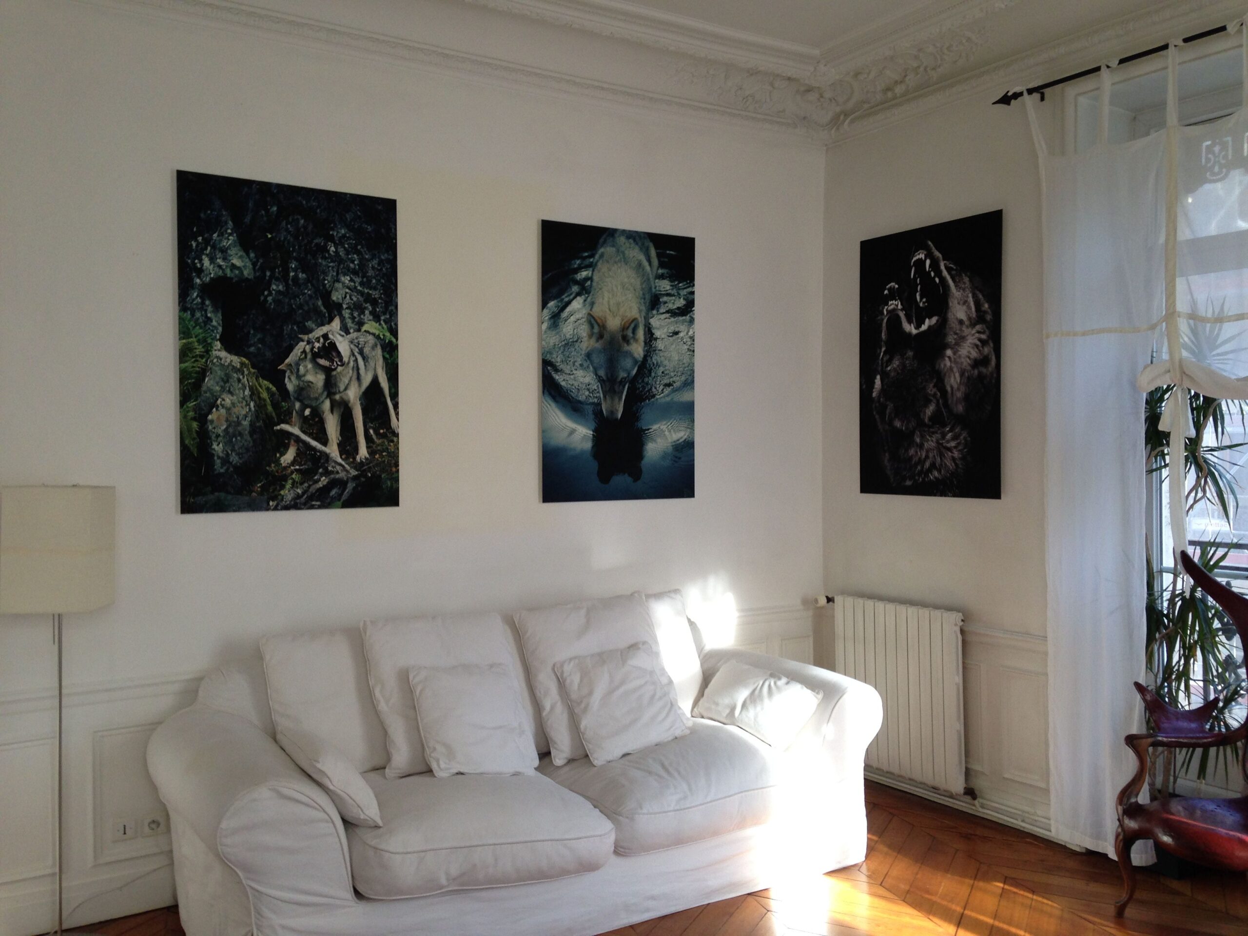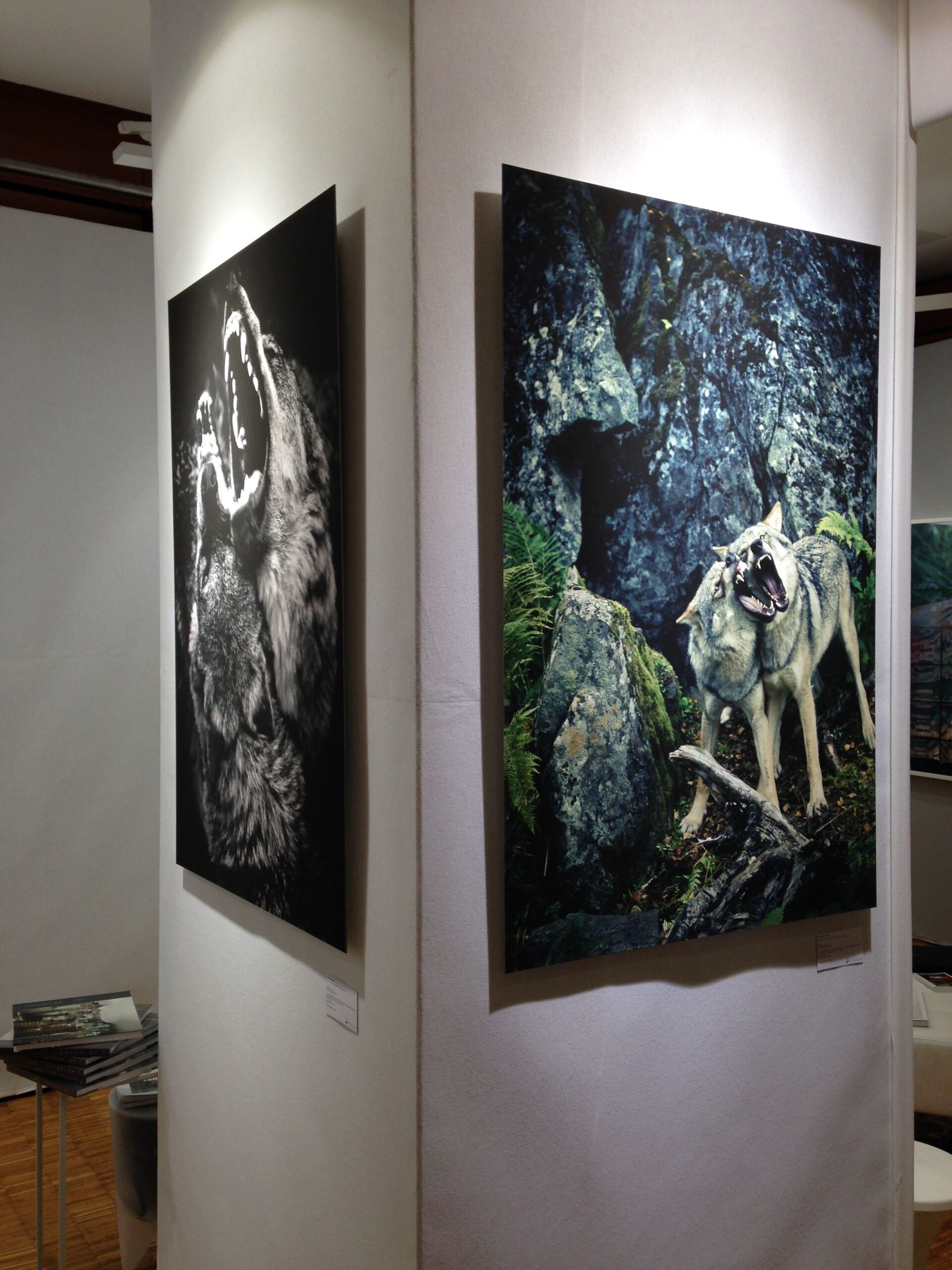 The artist said: « Man has always mystified the wolf through tales and legends. Everything we’ve ever heard about wolves since our childhood has transformed this animal into an unforgiving monster in our minds. We remain petrified by his eyes, his howl, his jaws, the pack… And yet working on this project I learned that wolf and man have quite similar traits from a behavioral point of view and that the wolf seems to outline the darker side of man. I wanted the viewer to get in touch with his own instinct and his own inner emotions. His instinct will guide him in the interpretation of the situation he is viewing, simply through the analysis of the wolf’s body language and its stare. The viewer can have a different interpretation depending on his or her own personal associations. It could be aggression, skepticism, fear, resignation, vulnerability or even curiosity. »