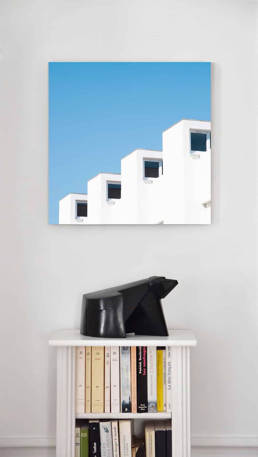Composed with the bare minimum (the detail of a wall, balconies, windows…), his photographs are always taken under a cloudless sky, the blue of which offsets the colors (pastel or more acid) of the different buildings and elements. Matthieu Venot is the representative of a contemporary photography which projects a bright and without cynicism view of the world, a view full of optimism which becomes communicative when one looks at his photographs.