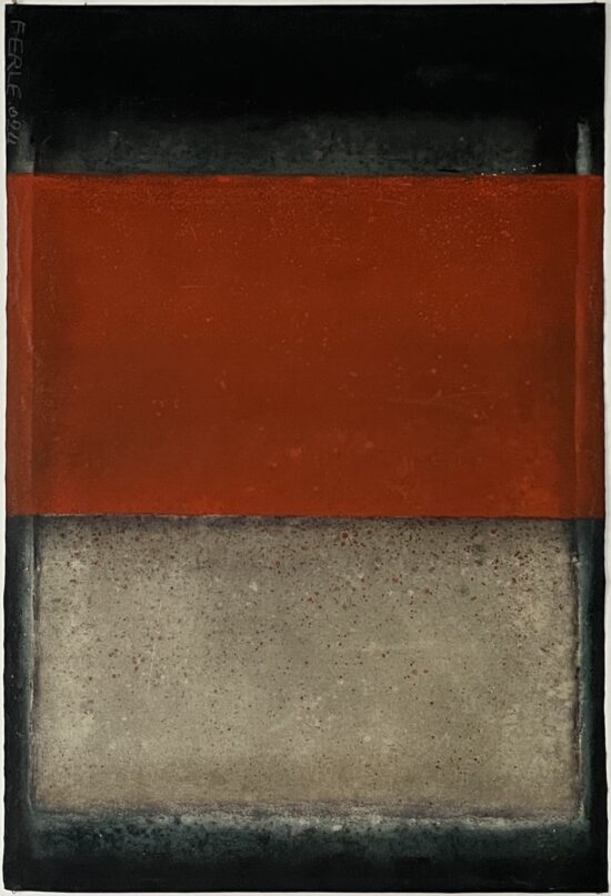 The spirituality emanating from Ferle’s work can appear in opposition to the gestural violence used for its realization. In the words of Emmanuel Dayde, art historian, Ferle “opens a door to another space, a fourth dimension. Looking at his large colored canvases, we are close to the black hole, physics and the stars ”. Between various varieties of colored tones, Ferle creates a deep and harmonious rhythm that invites the viewer to meditate.