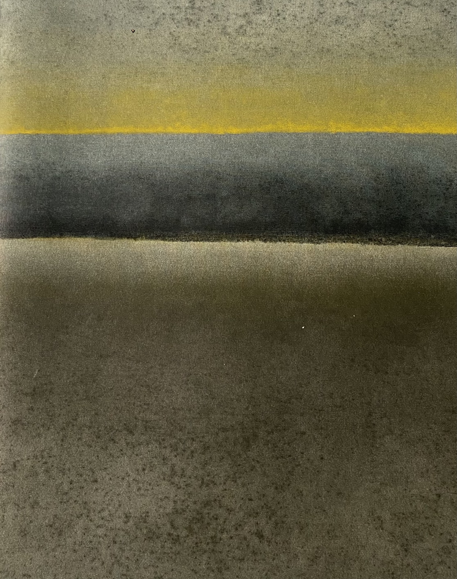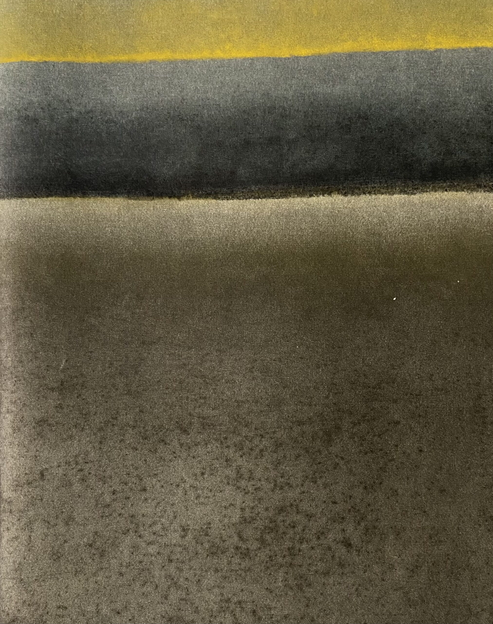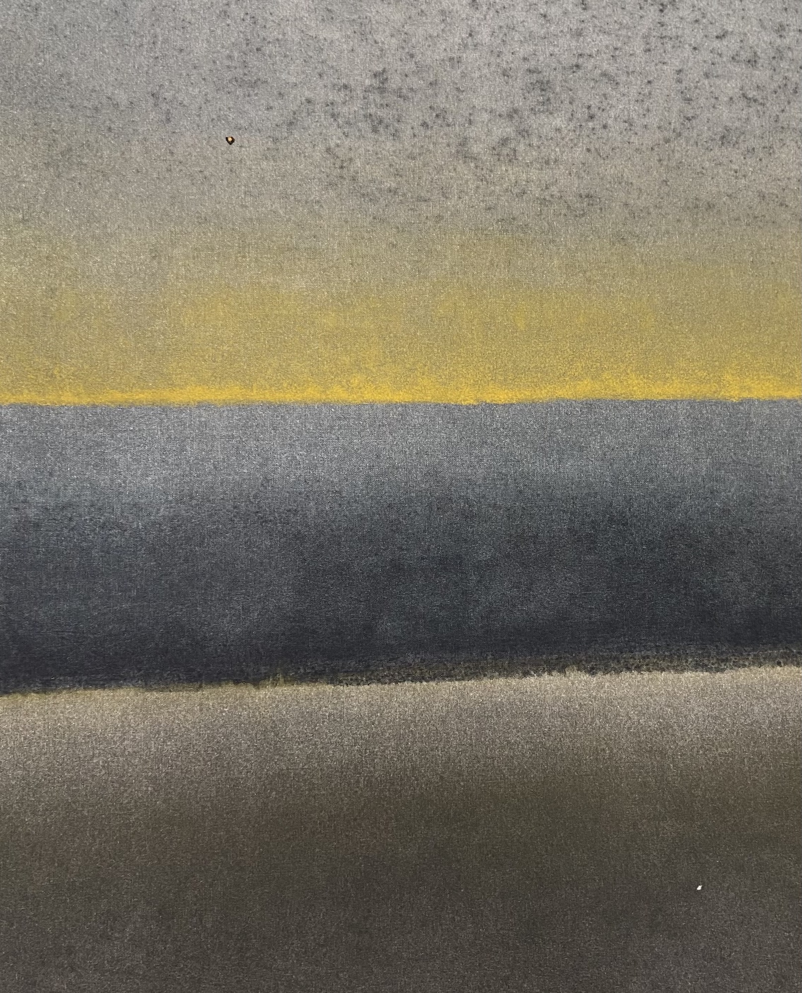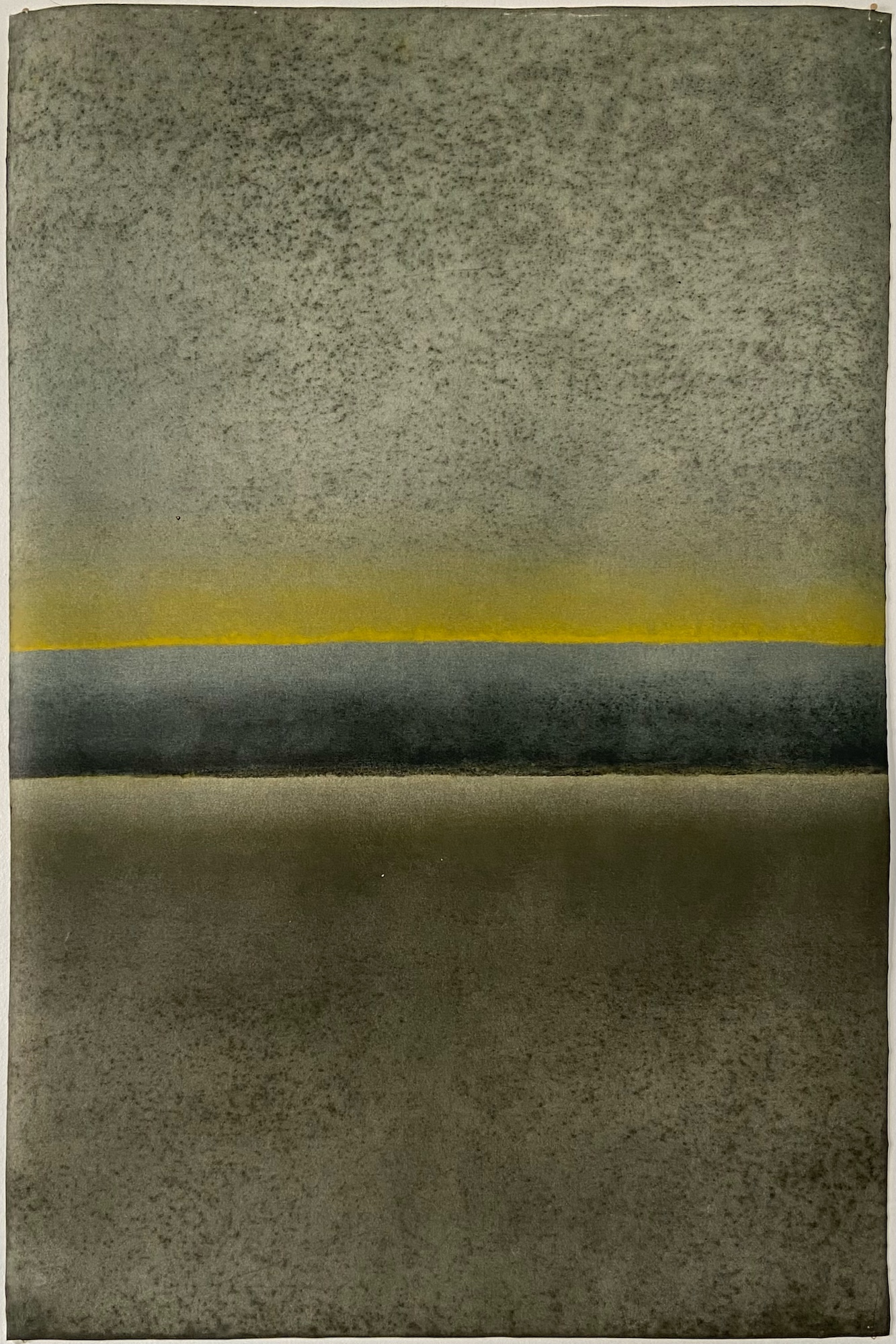 Untitled XXIX is a oil on canvas painting by the French contemporary artist, Ferle. This painting is created mainly with yellow, grey and green hues. Blending gradients with horizontal lines, this abstract piece captivates with the depth of its colors.