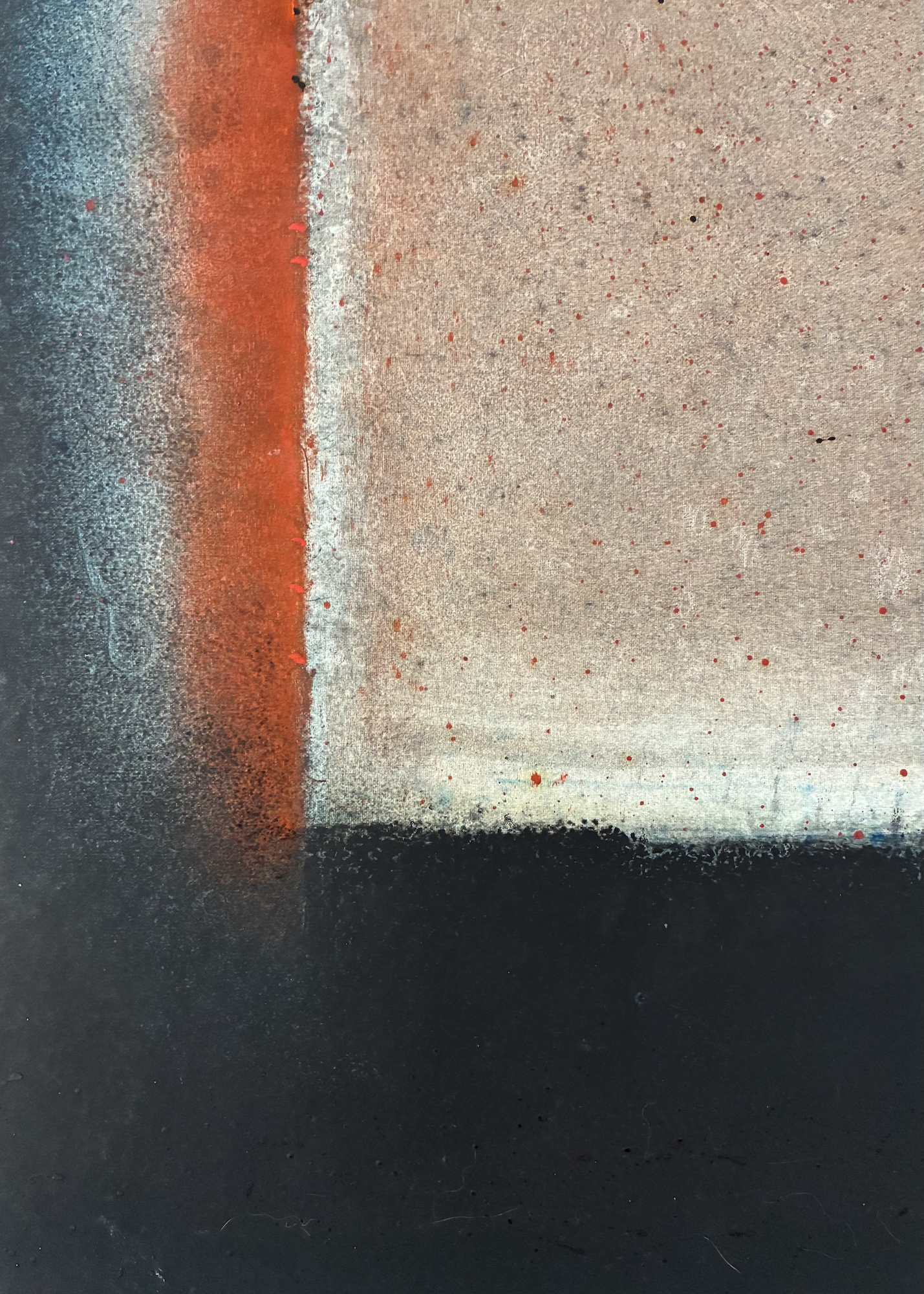 In standing in front of this abstract painting, influenced by Minimalism and Abstract Expressionism, a viewer would look to establish similarities before simply letting themselves carry on the journey, guided by the energy that appears on the canvas.