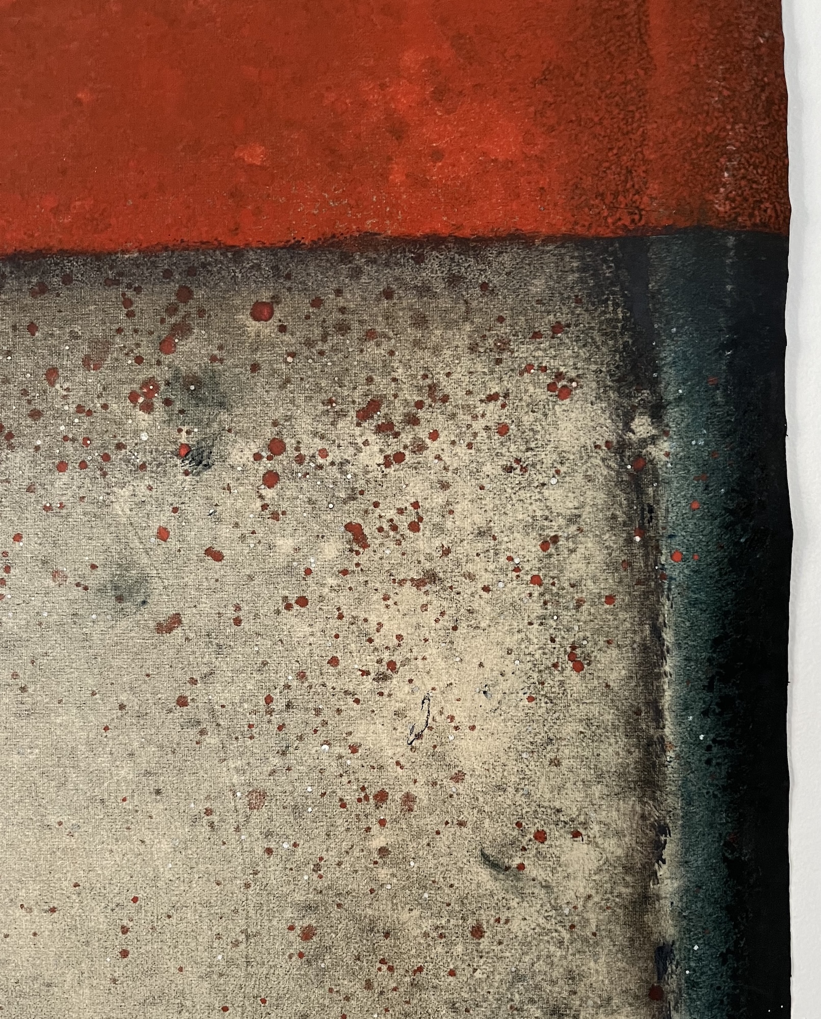 In standing in front of this abstract painting, influenced by Minimalism and Abstract Expressionism, a viewer would look to establish similarities before simply letting themselves carry on the journey, guided by the energy that appears on the canvas.