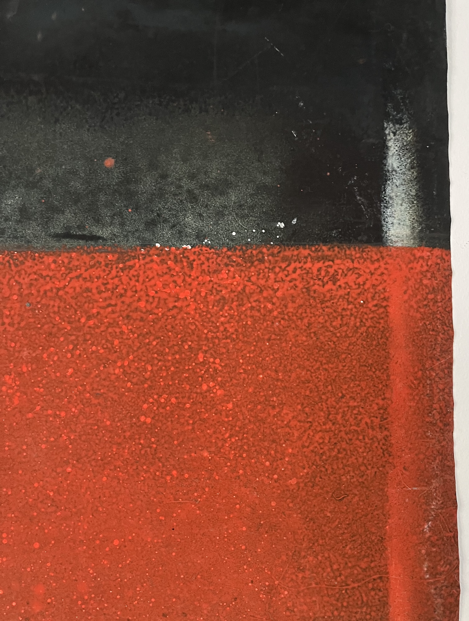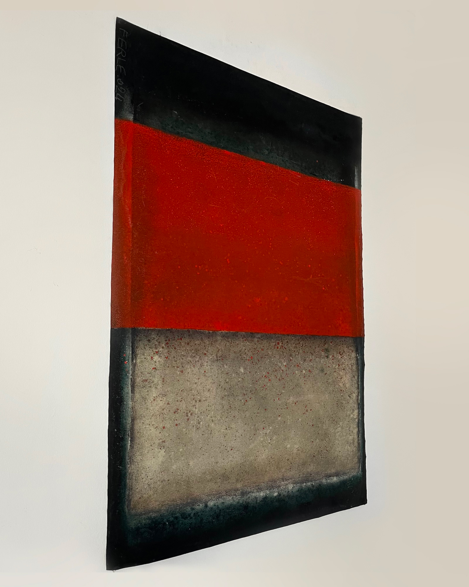 Untitled XXXI is a oil on canvas painting by the French contemporary artist, Ferle. This painting is focused on the red color. Blending gradients with horizontal lines, this abstract piece captivates with the depth of its colors.