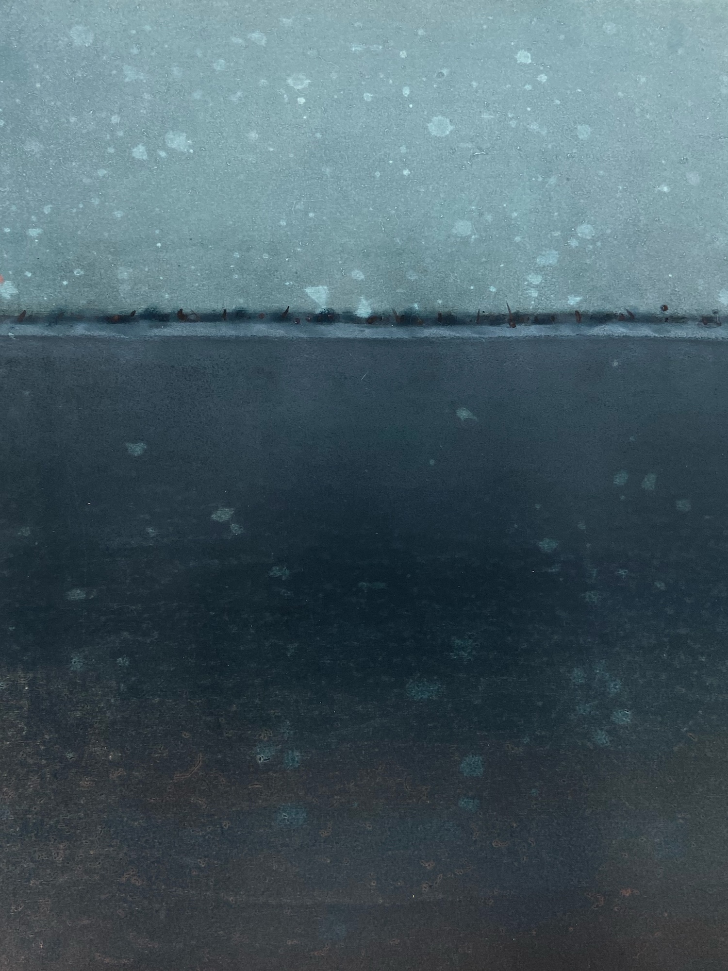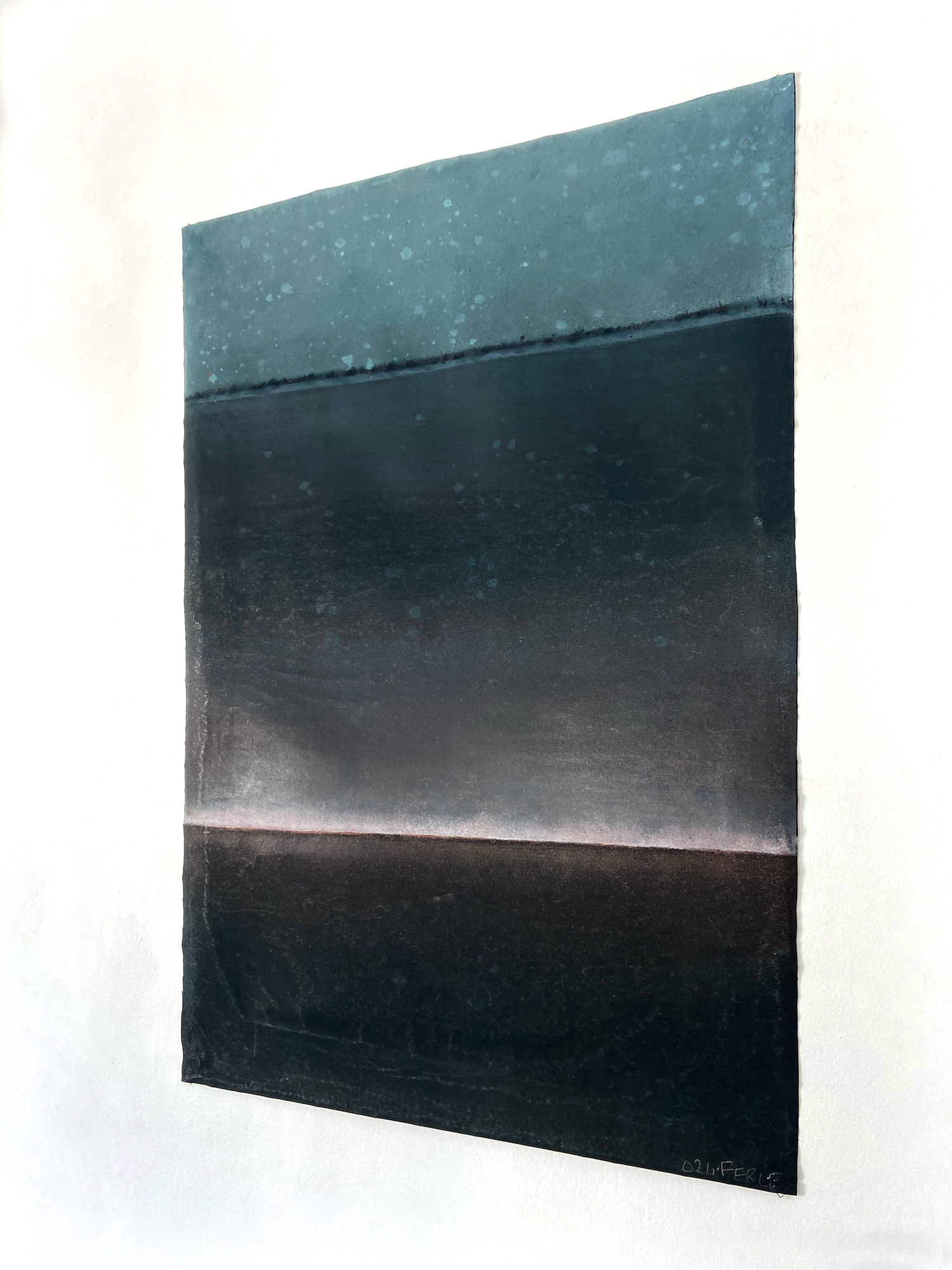 In standing in front of this abstract painting, influenced by Minimalism and Abstract Expressionism, a viewer would look to establish similarities before simply letting themselves carry on the journey, guided by the energy that appears on the canvas.