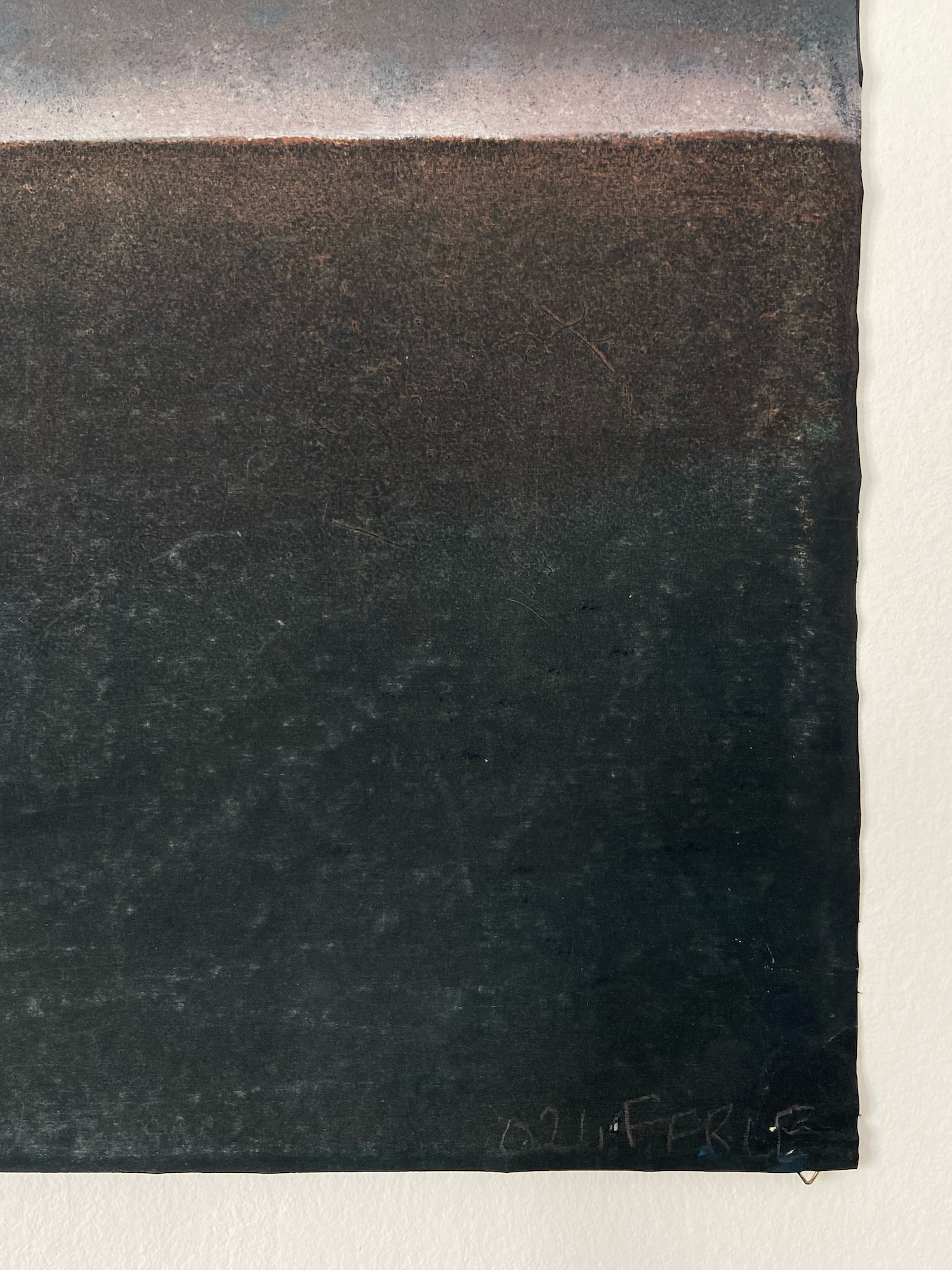 This canvas invites us to abandon any references we know to let us overwhelm by the spirituality they bear. This spirituality can seem to be in opposition with the violent gesture invested in the realization of the painting. The historian of art Emmanuel Dayde declares: “In her work, Ferle creates new space, paints openness and doors to infinity towards a sort of spirituality out of the body itself. She opens a door leading to another space – a fourth dimension. Looking at her large colour paintings, one feels close to the black hole, to physics and to the stars.” Between different varieties of colours, Ferle created a deep and harmonious rhythm which invites the viewer to meditate.