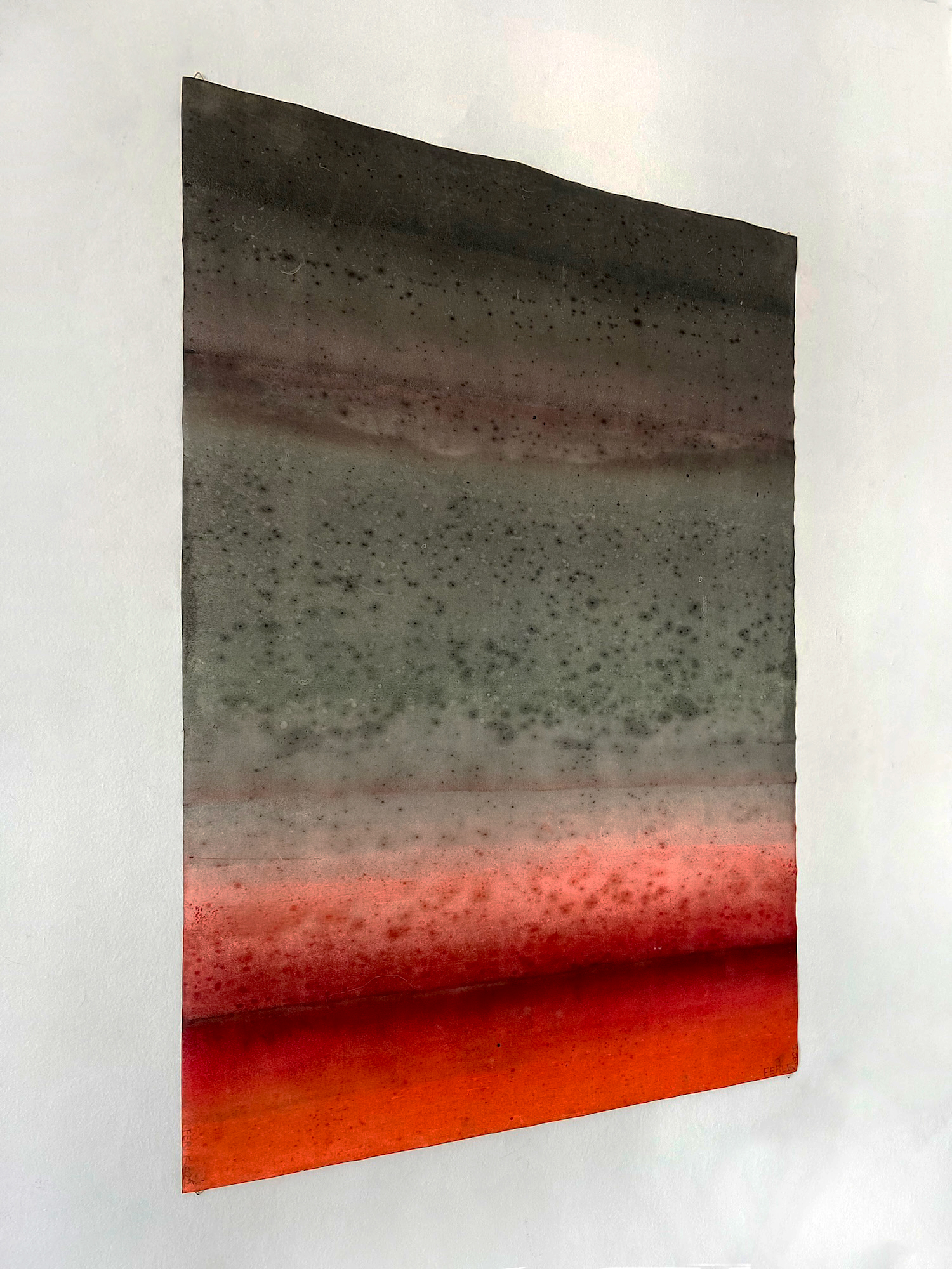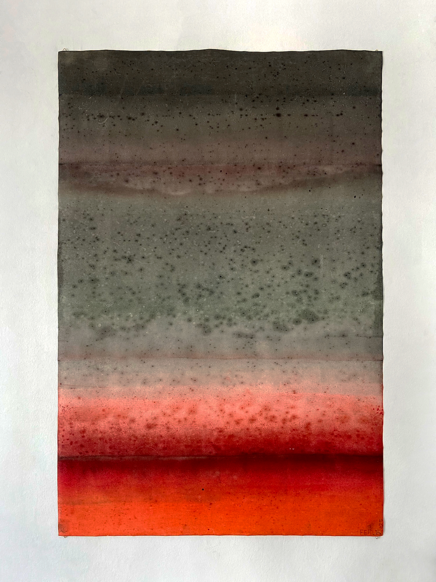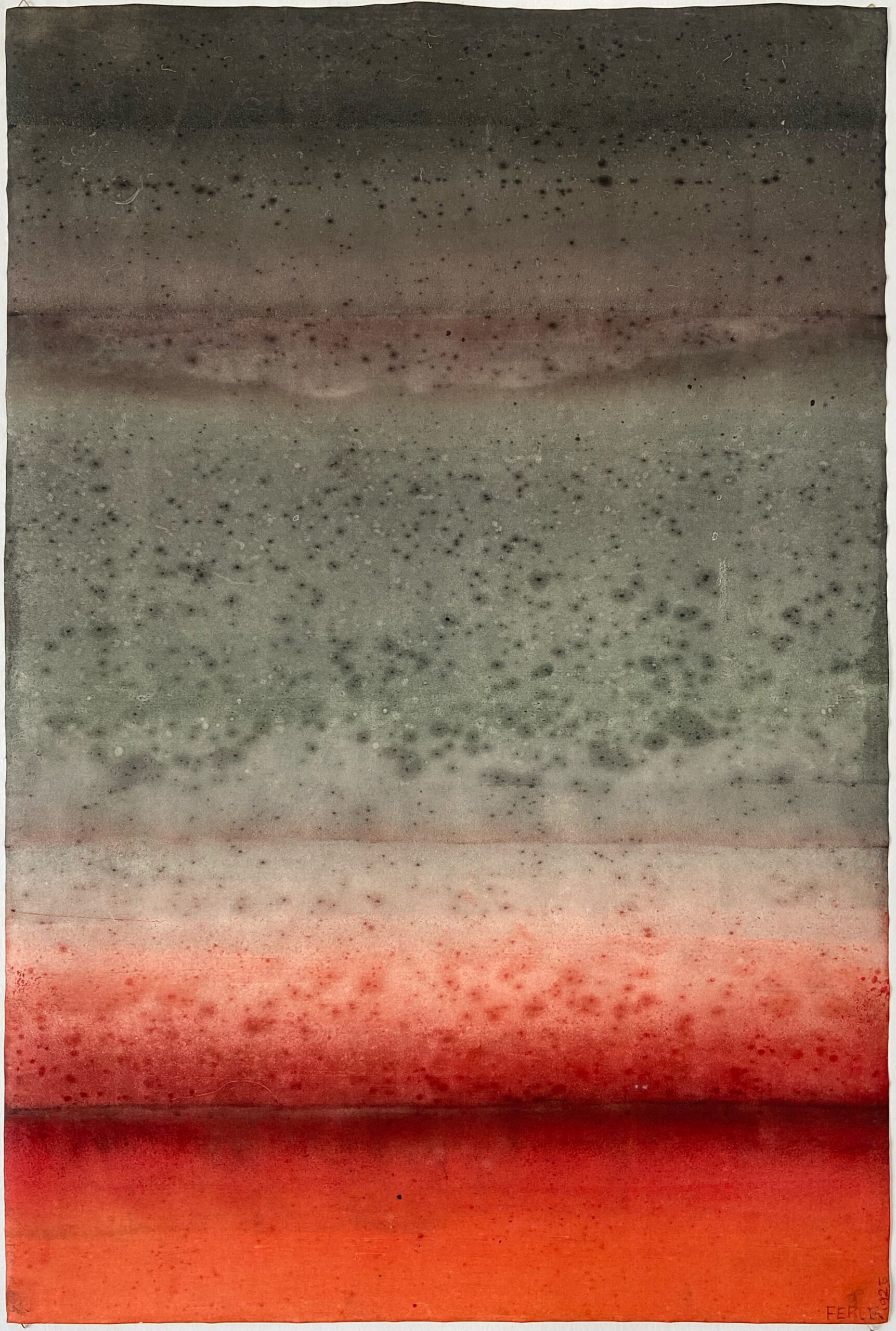 Untitled XXXV is a oil on canvas painting by the French contemporary artist, Ferle. This painting is composed of two main colors: red and grey. Blending gradients with horizontal lines, this abstract piece captivates with the depth of its colors.