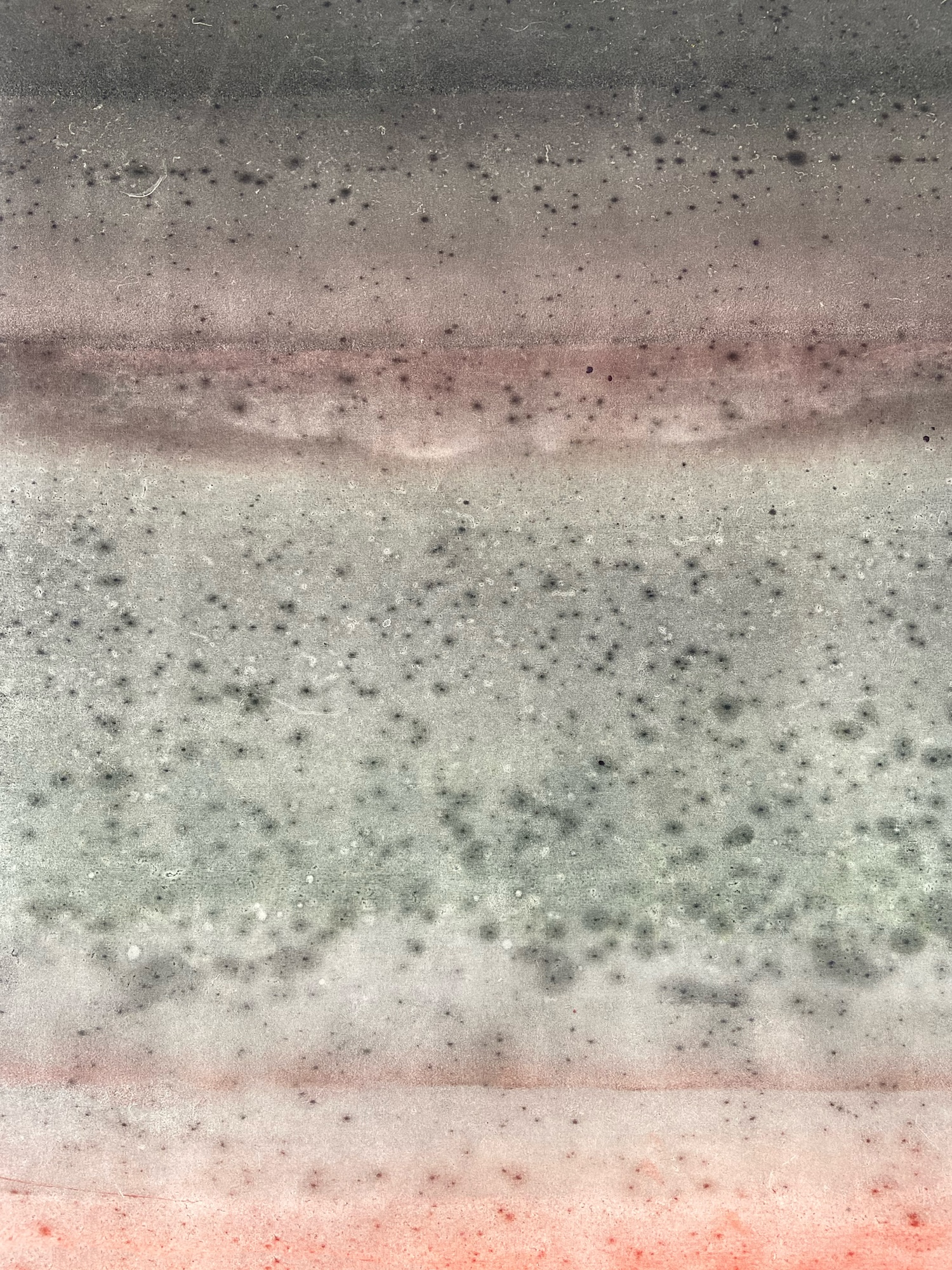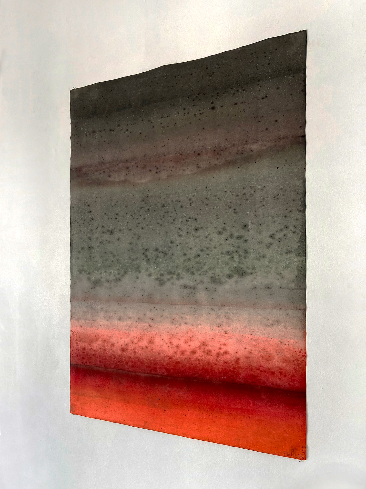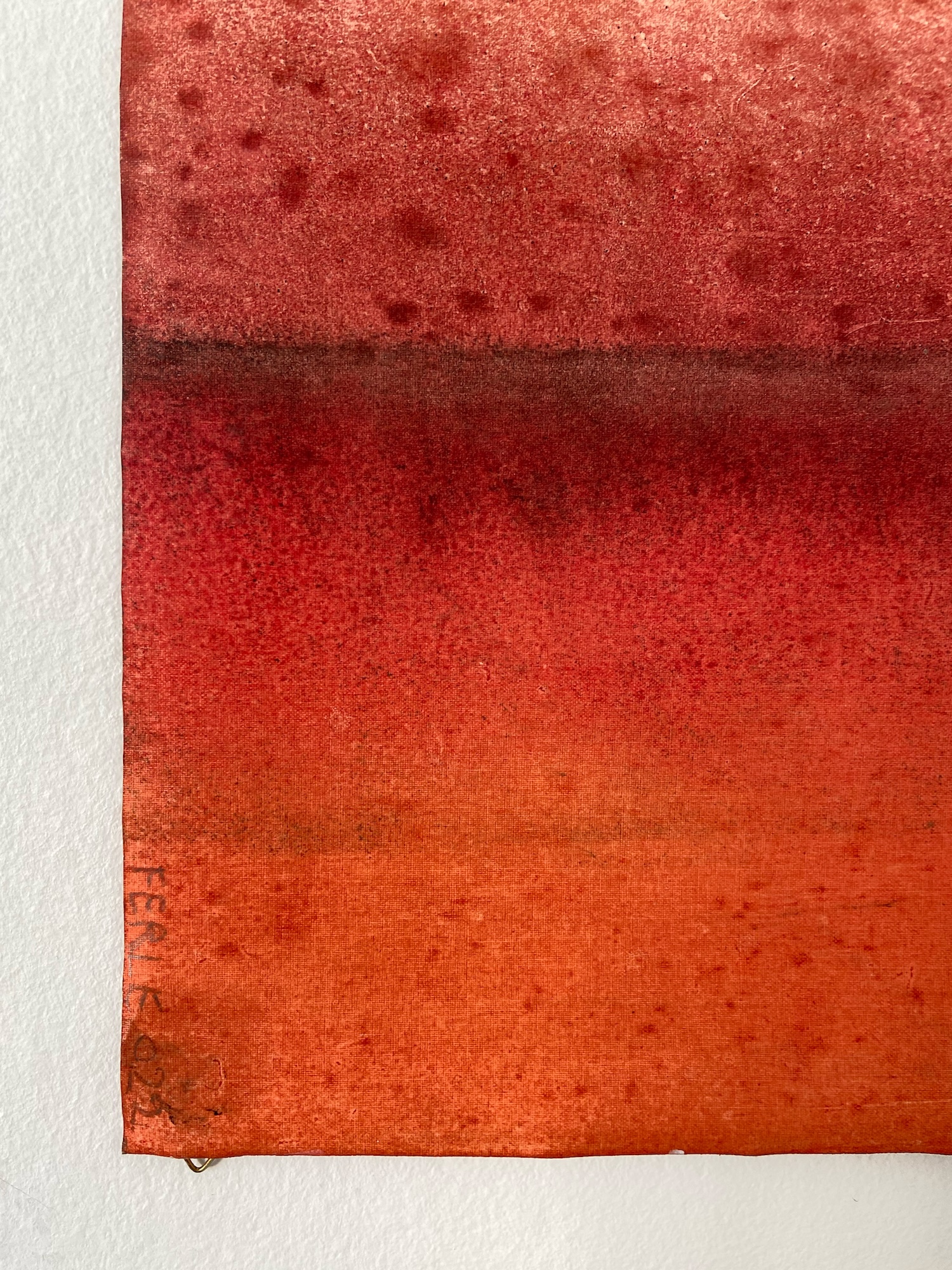 Untitled XXXV is a oil on canvas painting by the French contemporary artist, Ferle. This painting is composed of two main colors: red and grey. Blending gradients with horizontal lines, this abstract piece captivates with the depth of its colors.