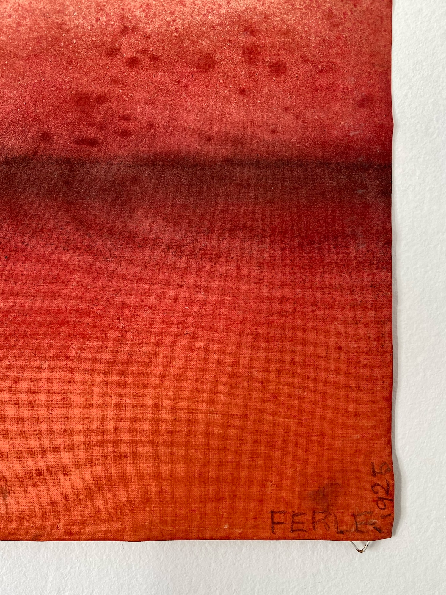 This canvas invites us to abandon any references we know to let us overwhelm by the spirituality they bear. This spirituality can seem to be in opposition with the violent gesture invested in the realization of the painting. The historian of art Emmanuel Dayde declares: “In her work, Ferle creates new space, paints openness and doors to infinity towards a sort of spirituality out of the body itself. She opens a door leading to another space – a fourth dimension. Looking at her large colour paintings, one feels close to the black hole, to physics and to the stars.” Between different varieties of colours, Ferle created a deep and harmonious rhythm which invites the viewer to meditate.