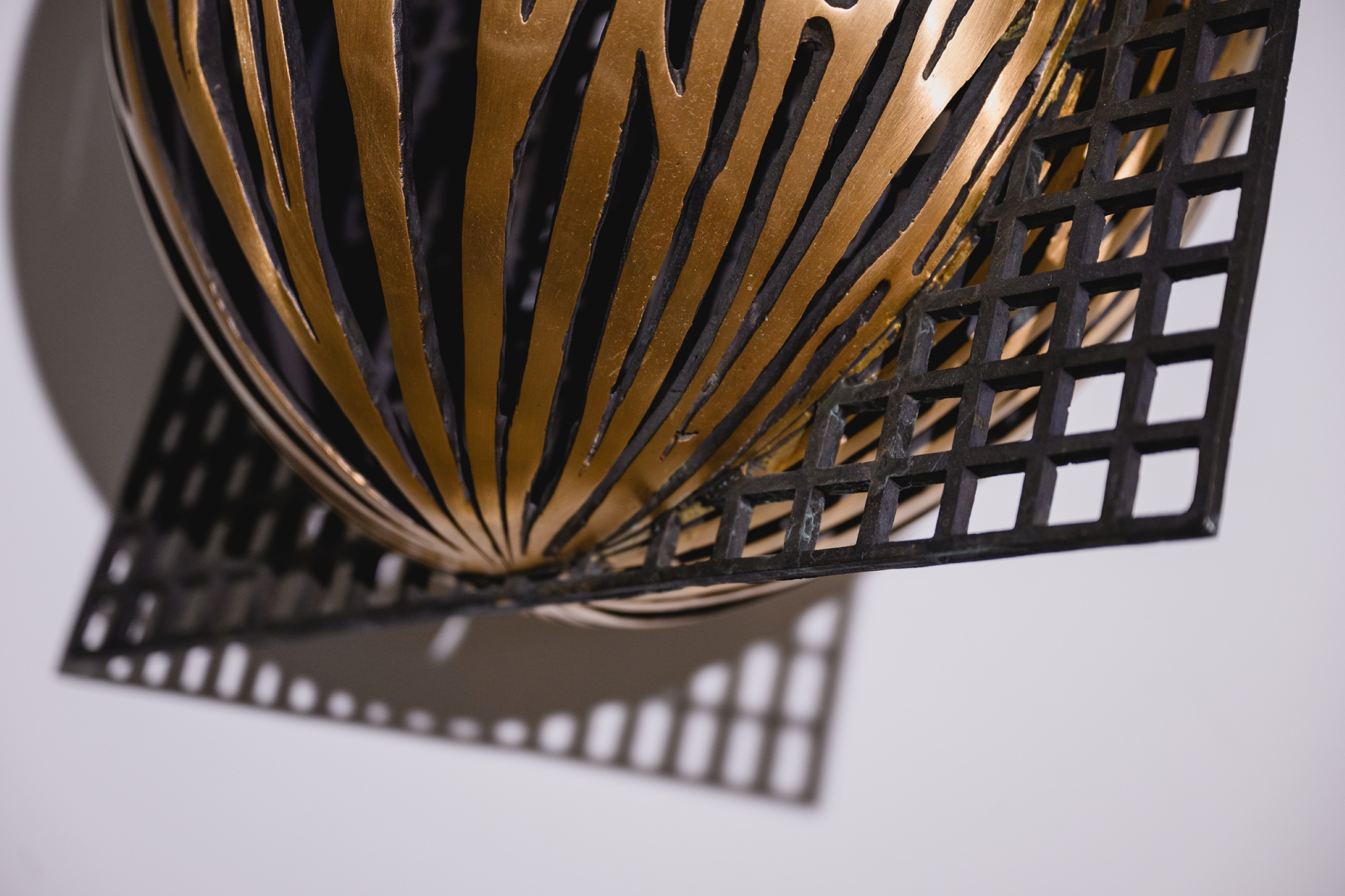 In this sculpture, the artist reinterprets a common object, a nut, toying with the contrasts between organic and inorganic, linear and curved forms. The voids in the sculpture produce a particularly interesting shadow effect. The aluminium, used in this sculpture, is particularly liked by the artist as it allows him to achieve the highest precision in the smallest of details.