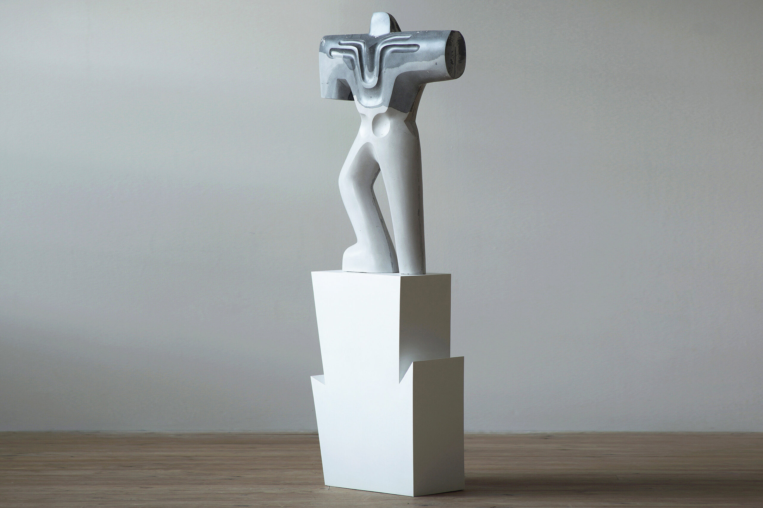 The sculptures of the Czech artist Pavlína Kvita come to life from the exploration of her inner world, resulting in the creation of mysterious figures with forms that are both archaic and futuristic. These anthropomorphic or zoomorphic creatures, silent presences outside of time, impose themselves in space with a blend of strength and balance, conferred on them by their dynamic, streamlined lines, tending towards abstraction. Pavlína Kvita’s sculptures are the end result of a circular process of creation/transformation/destruction which the artist establishes with the material, manipulating shapes and their infinite possibilities.
