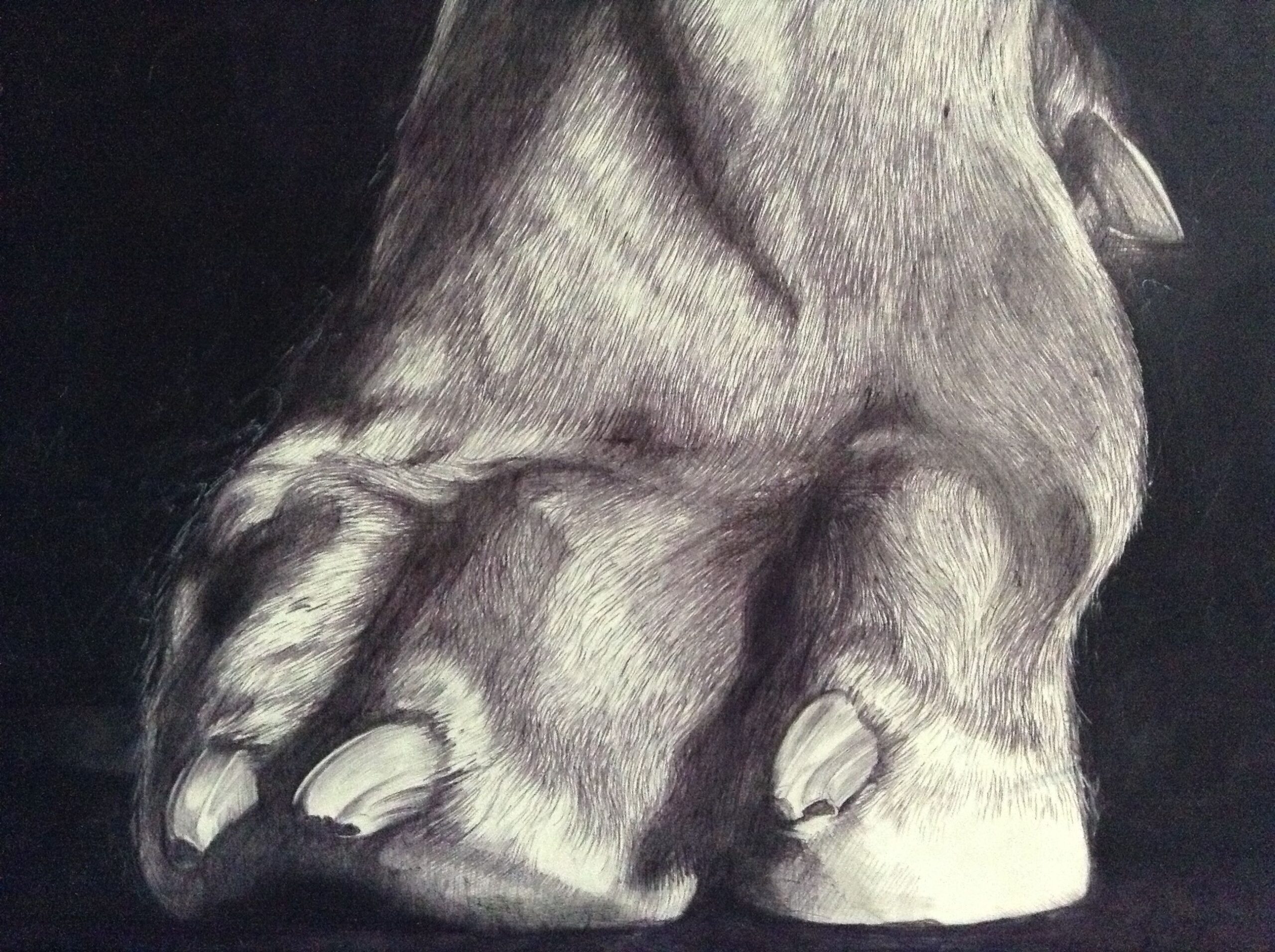 With the « Domestic procession » series Bisciglia explores animality. She draws monumental pictures of gorillas, dogs, birds, cats or lemurs. Through a finely detailed and monumental picture the artist celebrate the beast and places man at the foot of the animal, glorified and conquering.