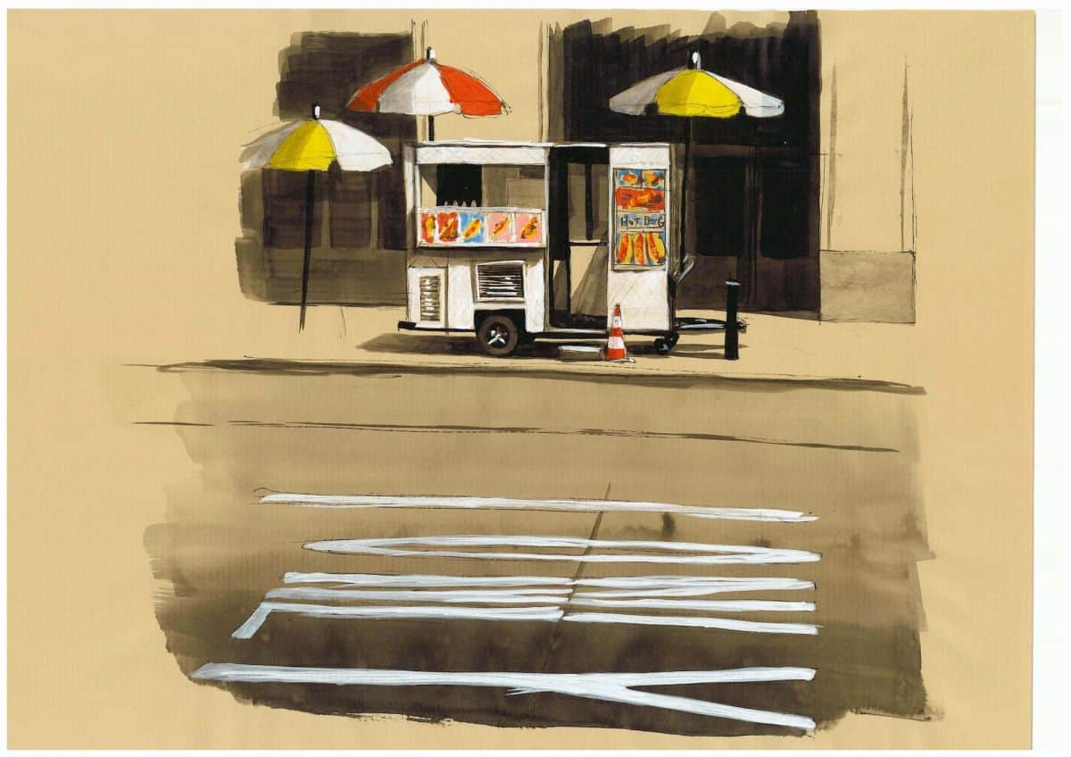 Guillaume Chansarel: “As I just explained, my goal was to feel the energy of Manhattan while doing my drawings. And as it is said that New York is the city that never sleeps, I told myself that I was going to do the same. That I was going to draw nonstop at a frantic pace… But there is also something else that I was looking for with the time constraint, a spontaneity: at each new street angle I had to find a subject, as quickly as possible! The search for a subject and the sketching of the drawing should not exceed 15 minutes. In other circumstances, I would probably not have chosen to draw a puddle, an old shopping cart, or even the shadow of a pole, for example…”
