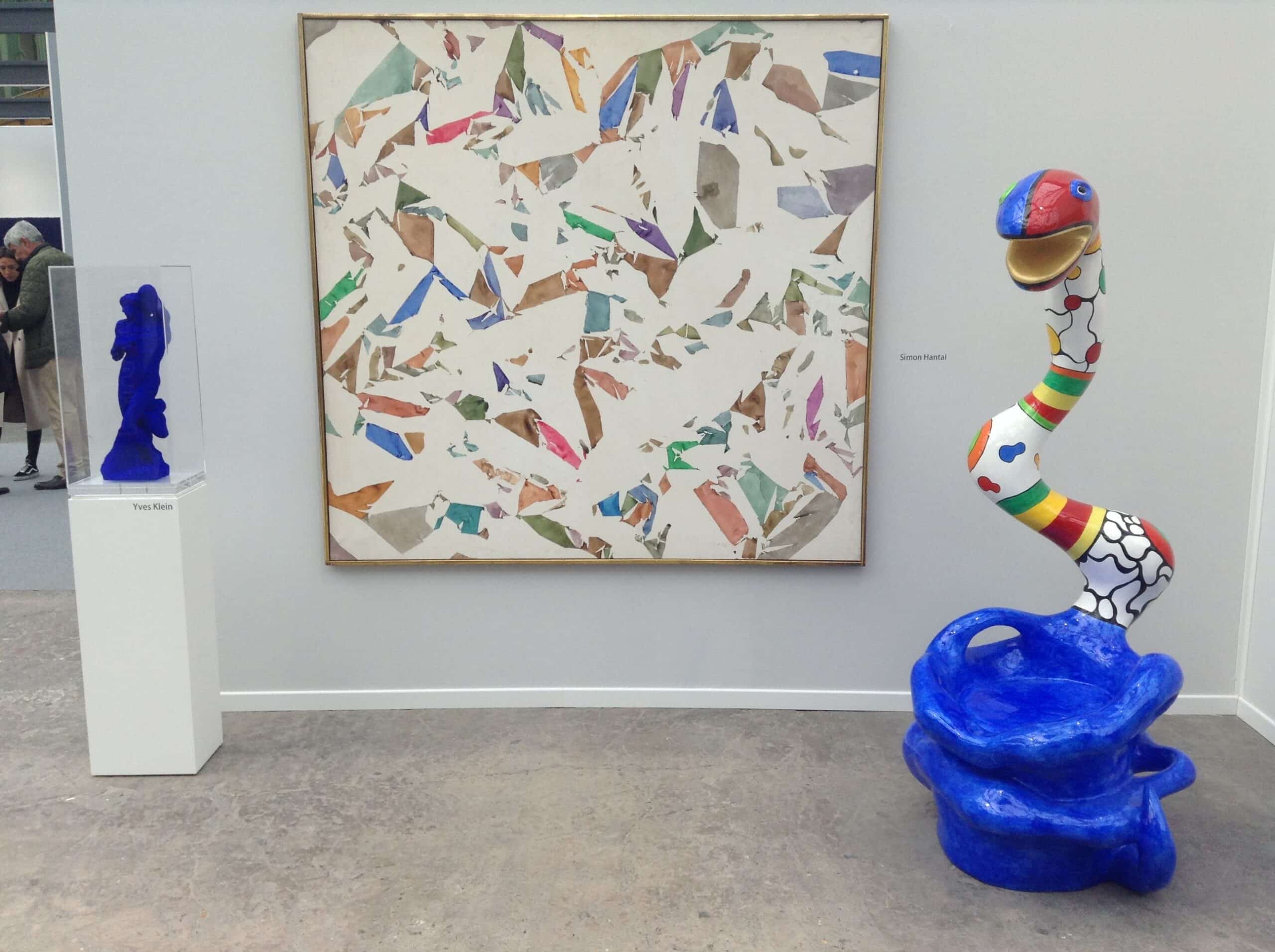 A great composition at the Guy Pleters Gallery where we found (from left to right) a Niki Saint Phalie, a Simon Hantal and an Yves Klein.