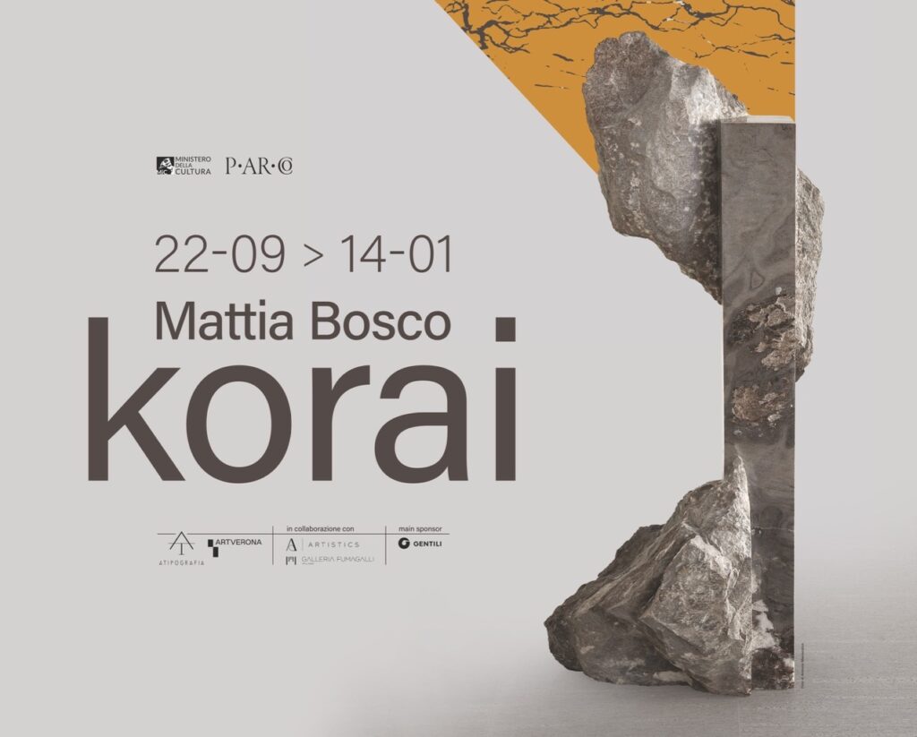 With his Korai exhibition, Mattia Bosco reintroduces these precious materials to the vestiges of the ancient temple, in a new form. In profound harmony with the spirit of the site, these 12 marble sculptures create the impression of a distant world that has reemerged, of something that was taken away but has now resurfaced, like ancient inhabitants who return with a new aspect, unrecognizable, transformed, but revealing, by the way they inhabit the space, that they are at home here.