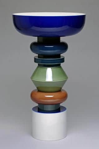 For two years running the Sèvres – Cité de la Céramique has been present at the PAD in both Paris and London. A veritable institution, the Sèvres factory has been producing ceramic art since the 18th century. Far from an out-of-date artisanal art-form, Sèvres has always surrounded itself with real artists, both emerging and established, which imparts a resolutely contemporary feel: Michele de Lucchi (bottom left,) Ettore Sottsass, Aldo Bakker (bottom right) and others. Proudly entitled ” colours of Sèvres,” the Cité de la Céramique stand didn’t disappoint us either by the originality of the different pieces on show or their actual presentation.