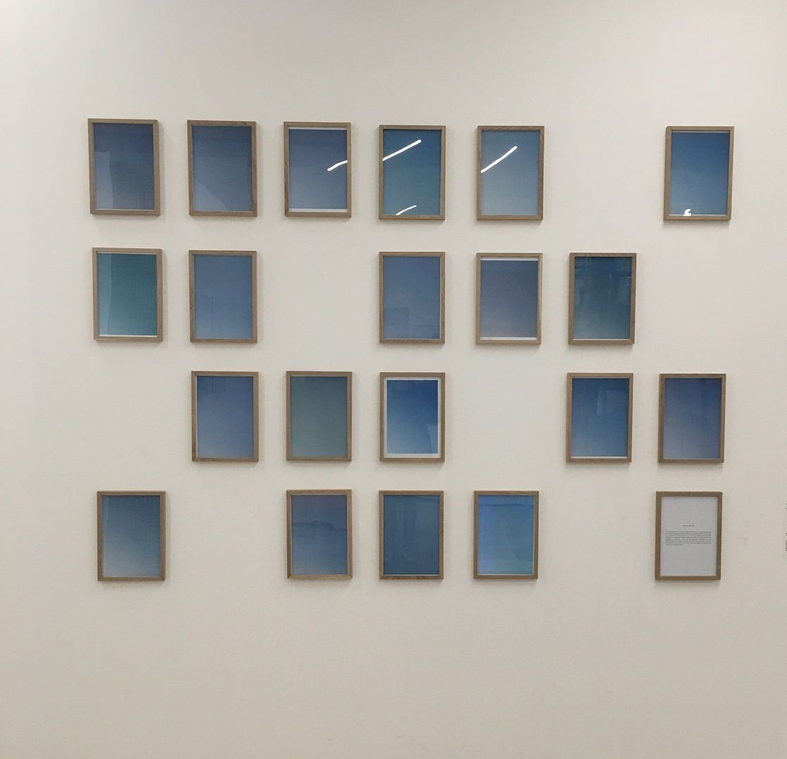 Here, the blue sky has been photographed once but printed out on 20 different printers. 20, the number of Gauloises cigarettes in one packet and just as blue. the same sky, the same cigarette and yet the experience is never the same.
