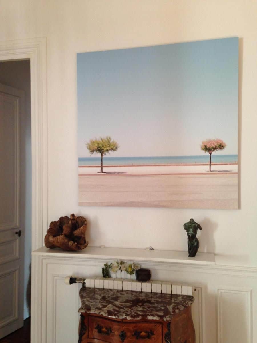 This process can only be done by professionals (photo laboratory, framers.) The print is attached to a rigid backing: either aluminium (1 – 3mm thick) or alu-Dibond (a type of composite panel.) Along the same lines, there is a finishing called Diasec. In this case the print is set between a layer of acrylic and a layer of substrate (approx. 4mm each,) the transparency of this material gives a sharper, richer finish to your photograph.