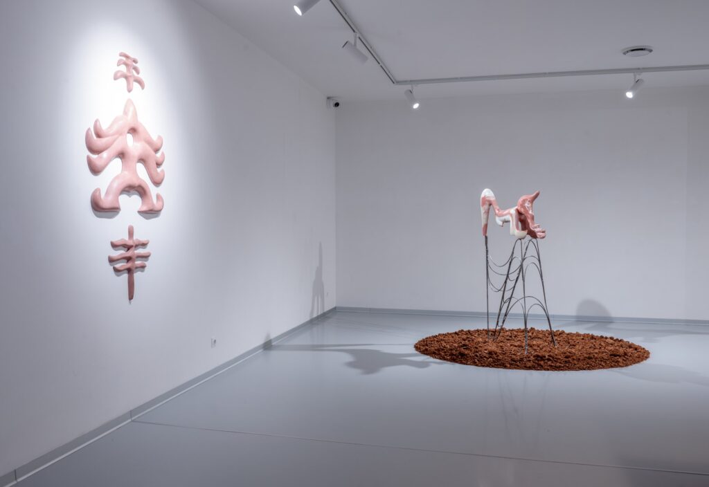 The latest sculptures by Czech artist Pavlina Kvita emerge from a sustained reflection on red earth, conceived as an archaic material laden with memory, gesture and belief. Crafted in artificial stone, her works evoke a ritual sensibility: ambiguous objects, totem-like figures and hybrid forms that feel simultaneously unearthed from the past and projected into a speculative future.