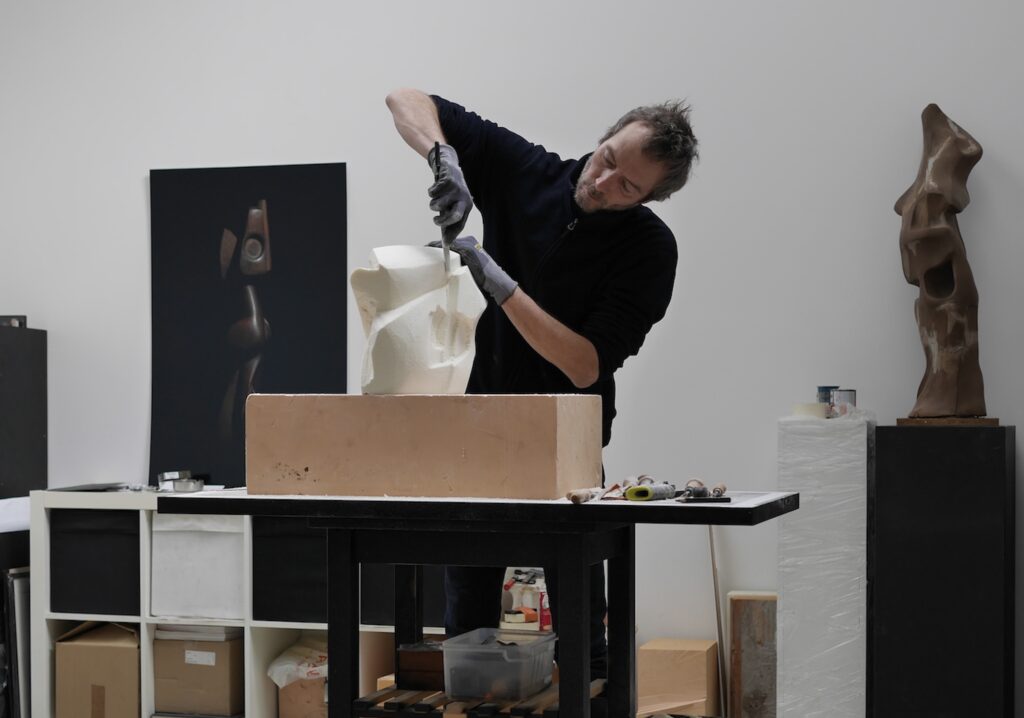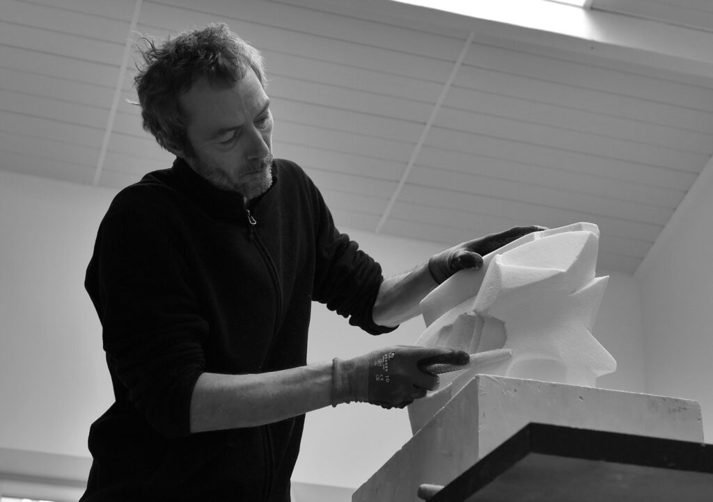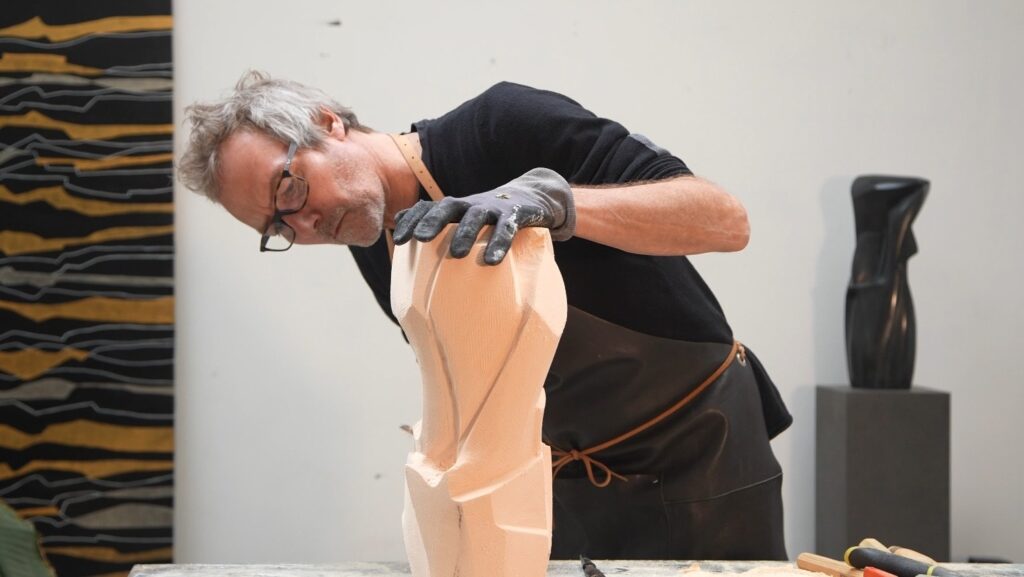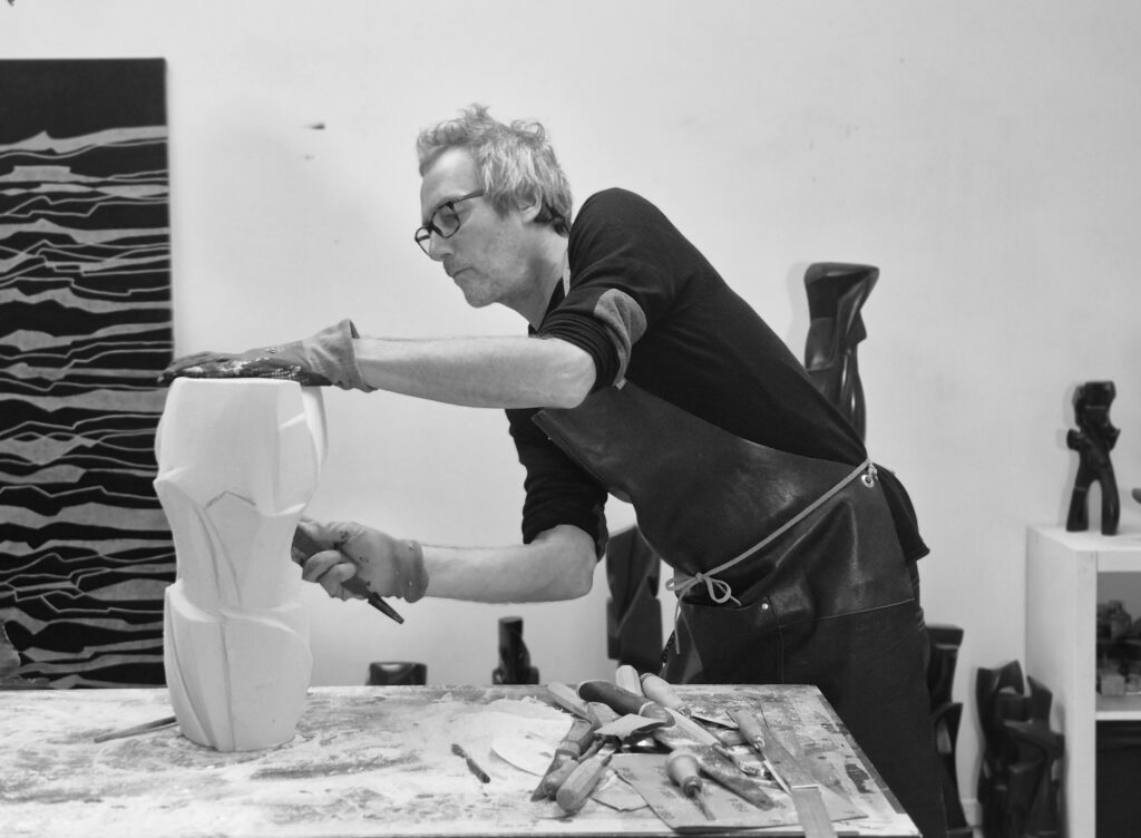 Antoine Vidal (né en 1971) n’a pas toujours été sculpteur. Autodidacte, il a d’abord évolué dans l’univers musical, en tant que compositeur, producteur de disques et fondateur d’une société de production. Pour des raisons personnelles, il arrête sa carrière musicale en 2014. C’est une sculpture en bois d’ébène, réalisée des années auparavant à la suite d’un voyage en Côte d’Ivoire, qui ravive son désir de sculpter. Cela l’incite à explorer plus en profondeur les formes et les lignes qu’il dessinait depuis sa jeunesse. Suivant avec spontanéité son instinct créatif, il produit alors une première série de sculptures abstraites en bois. Depuis, il n’a jamais abandonné la sculpture. Aujourd’hui, ses œuvres sont présentées dans des foires et des galeries d’art à travers l’Europe. L’artiste collabore régulièrement avec des décorateurs d’intérieur de renom.