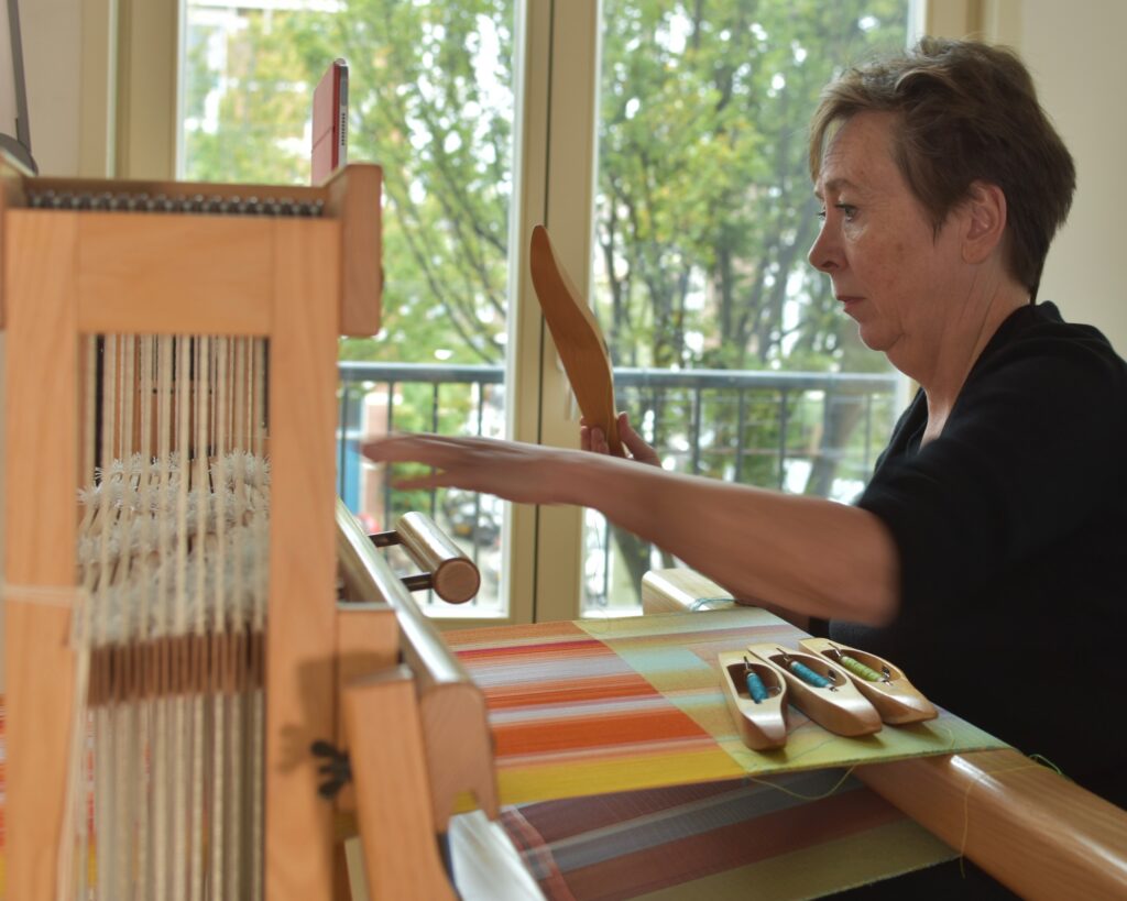 Christiane Maurer (1963) est née en Allemagne et vit aux Pays-Bas depuis plus de 30 ans. Elle travaille dans deux ateliers : l’un située à La Haye et l’autre plus au sud, près de la frontière avec la Belgique et l’Allemagne. La passion pour les textiles et pour l’artisanat l’a toujours accompagnée. Pendant son enfance, elle a été particulièrement impressionnée par les magnifiques objets réalisés à la main par les femmes locales de Johannesburg, en Afrique du Sud, où elle a vécu avec sa famille.
