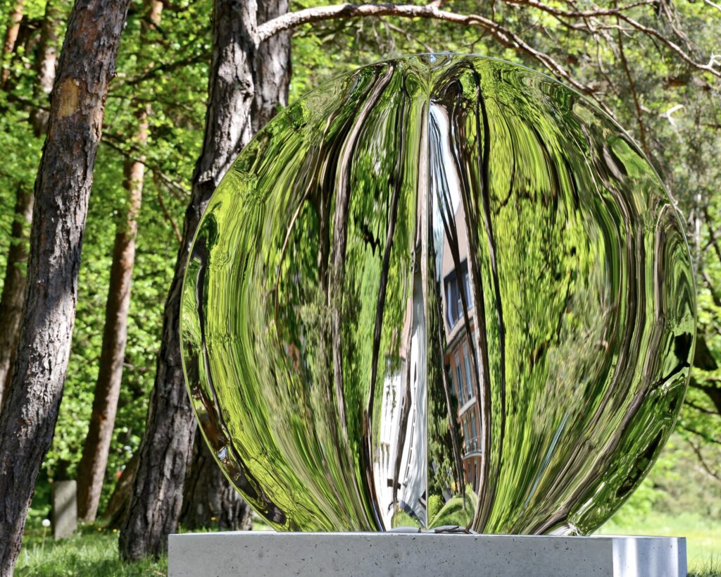 Les œuvres en acier inoxydable poli de l’artiste français Franck K jouent avec la lumière et les reflets de leur environnement, questionnant la perception de l’observateur et stimulant son imagination au gré de ses mouvements et de son regard.