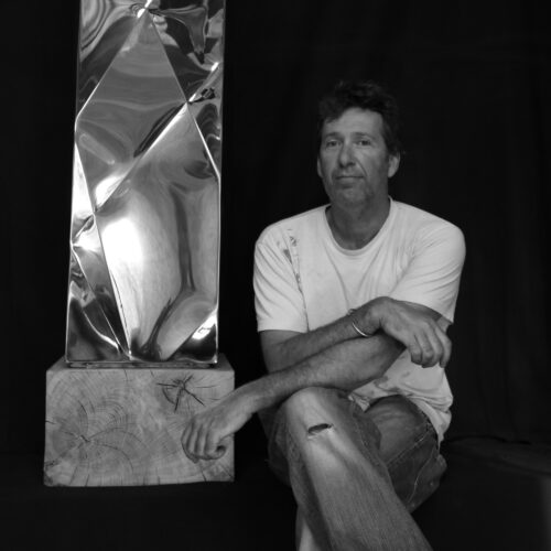 Franck K (1965) est un sculpteur contemporain français qui vit et travaille près de Pau, dans le sud-ouest de la France. Son parcours d’autodidacte commence dans l’atelier de chaudronnerie de l’entreprise familiale où, enfant, il découvre le travail de la matière, notamment du métal. Cette connaissance technique est la base solide sur laquelle se fonde la qualité de son travail. A l’âge de huit ans il produit sa première sculpture en ardoise, qui marque le début de sa démarche artistique.